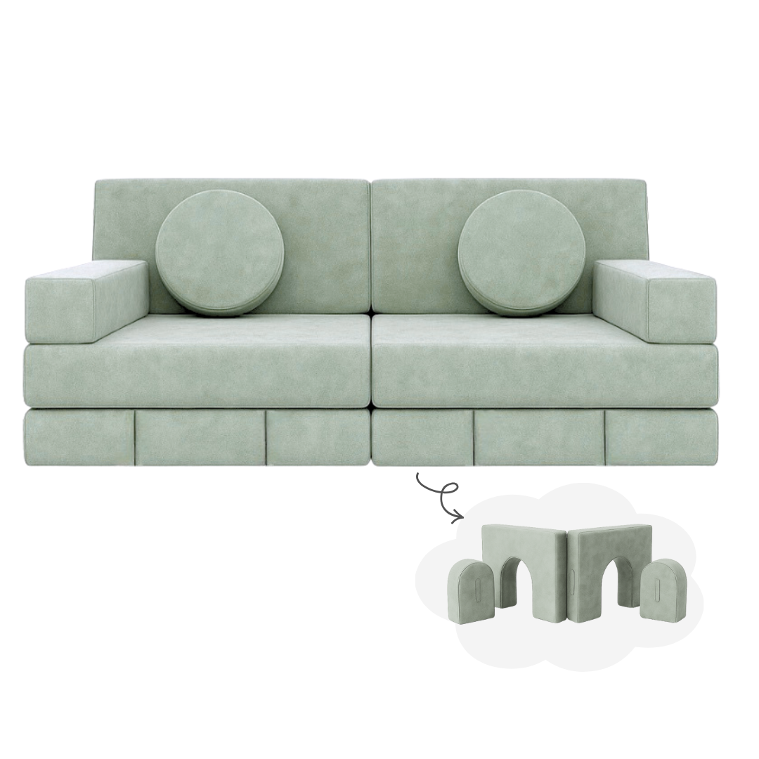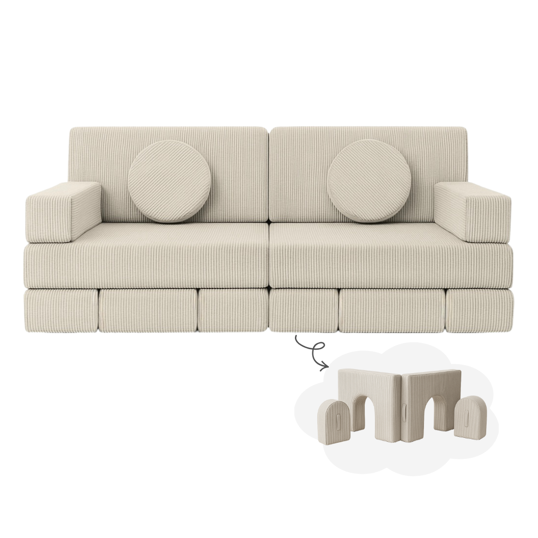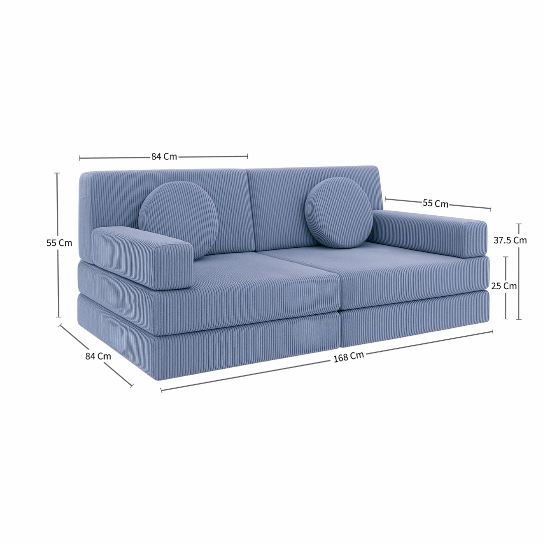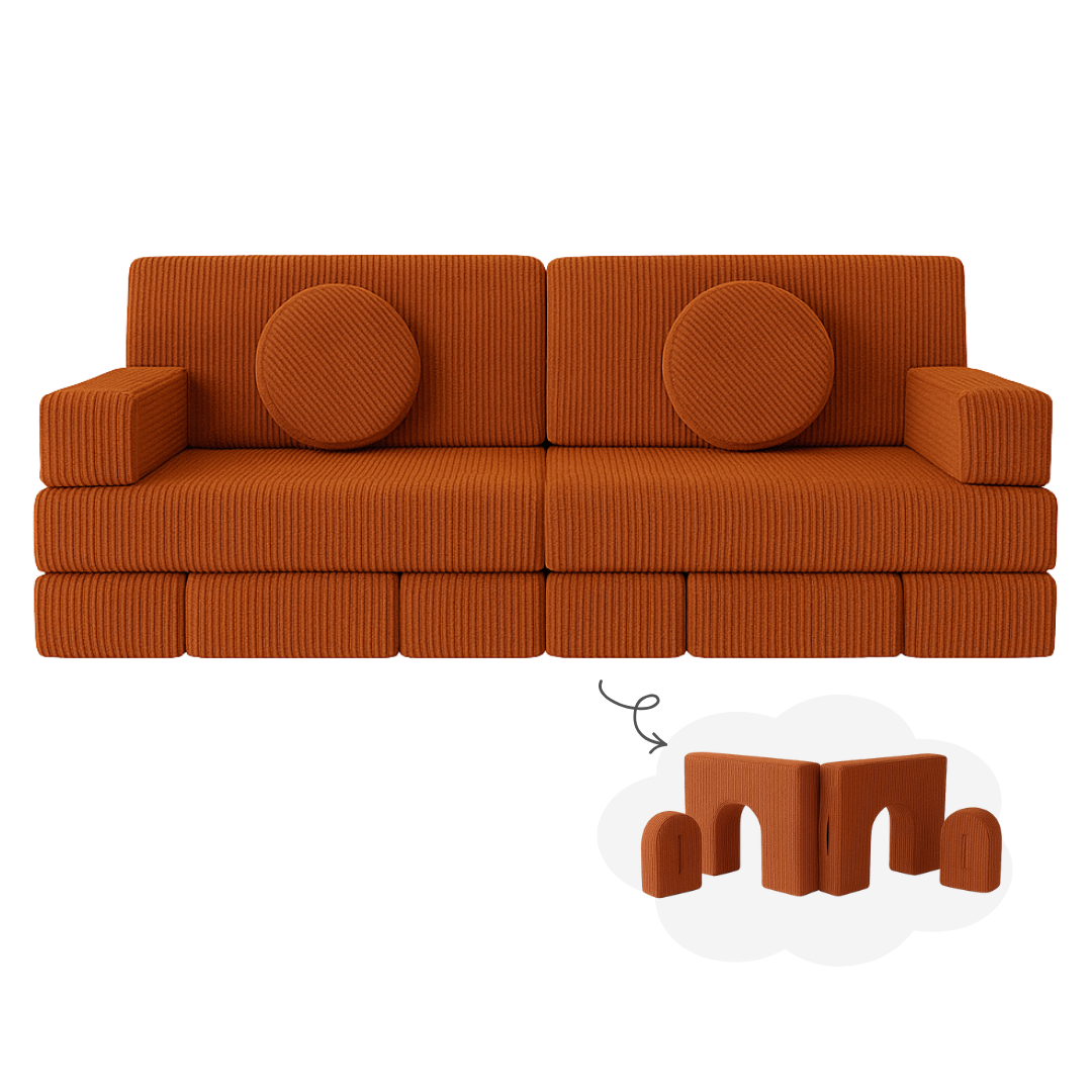 The Play Couch: An Award-Winning Favourite. Comprising of two thick bases, two full-length trapeziums, and a pair of cosy armrests, this is the favourite choice for both fun and relaxation.
