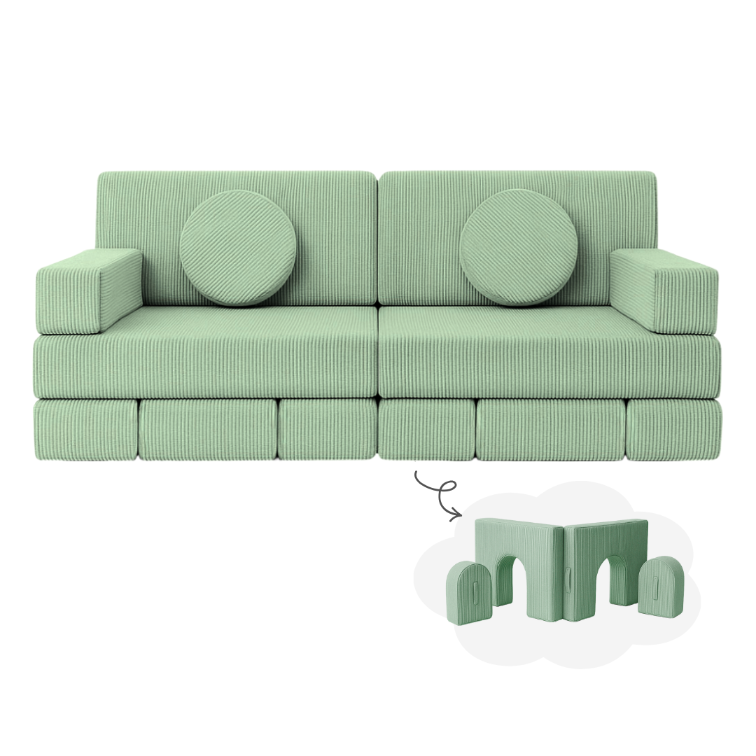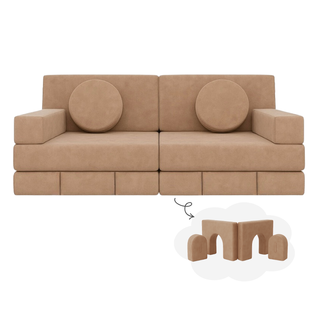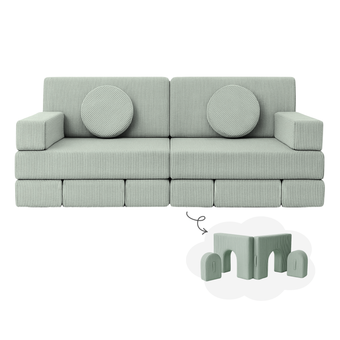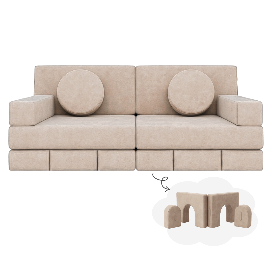 The Play Couch: An Award-Winning Favourite. Comprising of two thick bases, two full-length trapeziums, and a pair of cosy armrests, this is the favourite choice for both fun and relaxation.