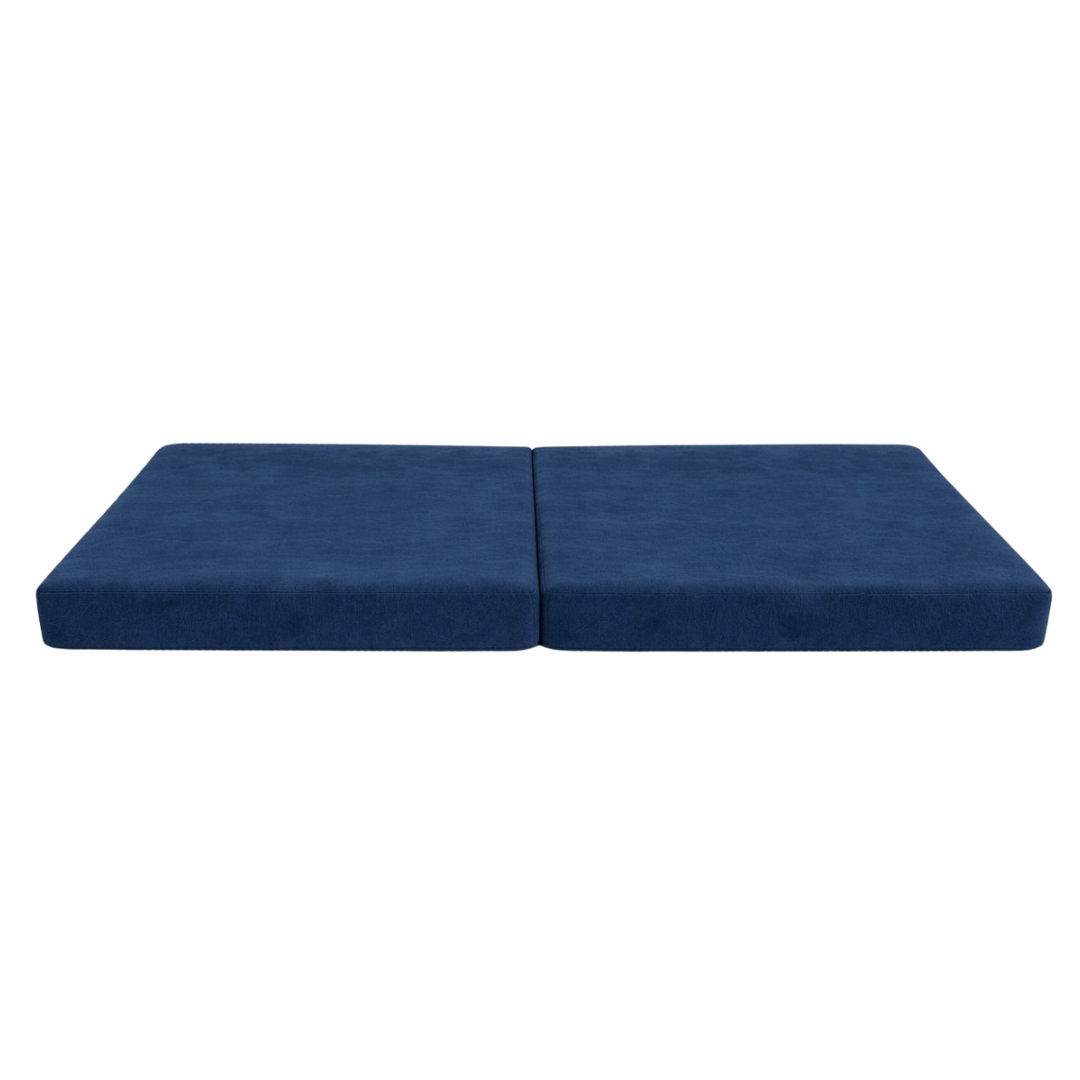 • Two large base cushions – each measures 168 cm long × 84 cm wide × 12.5 cm deep. These make up the main foundation of the couch and can be laid flat as a bed, stacked for height, or used as sturdy walls in cubby houses.