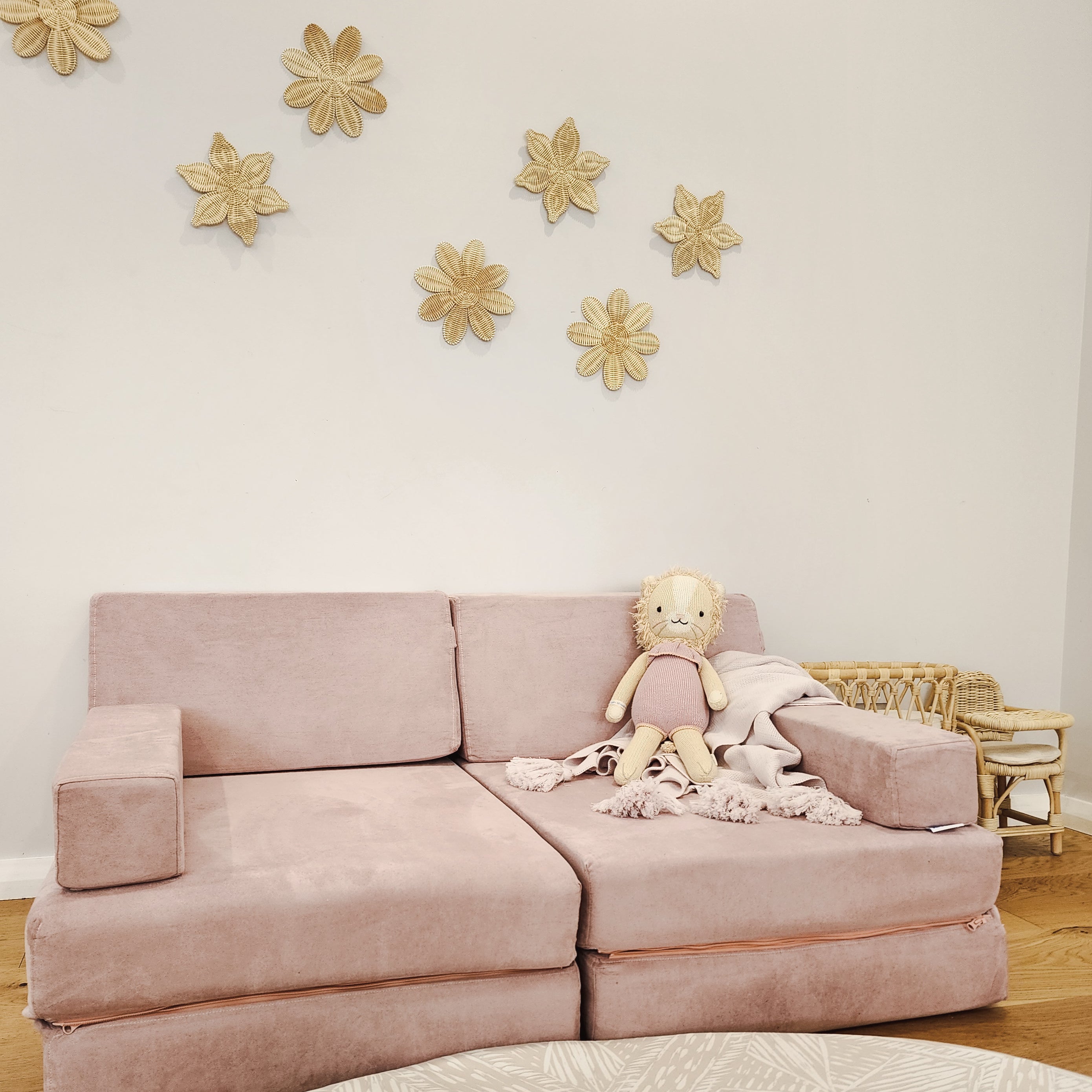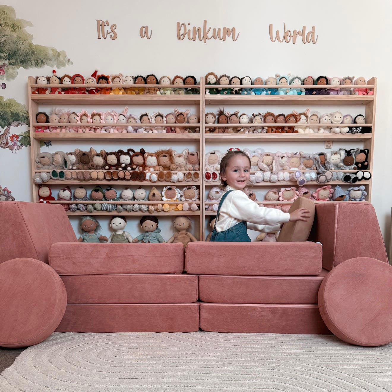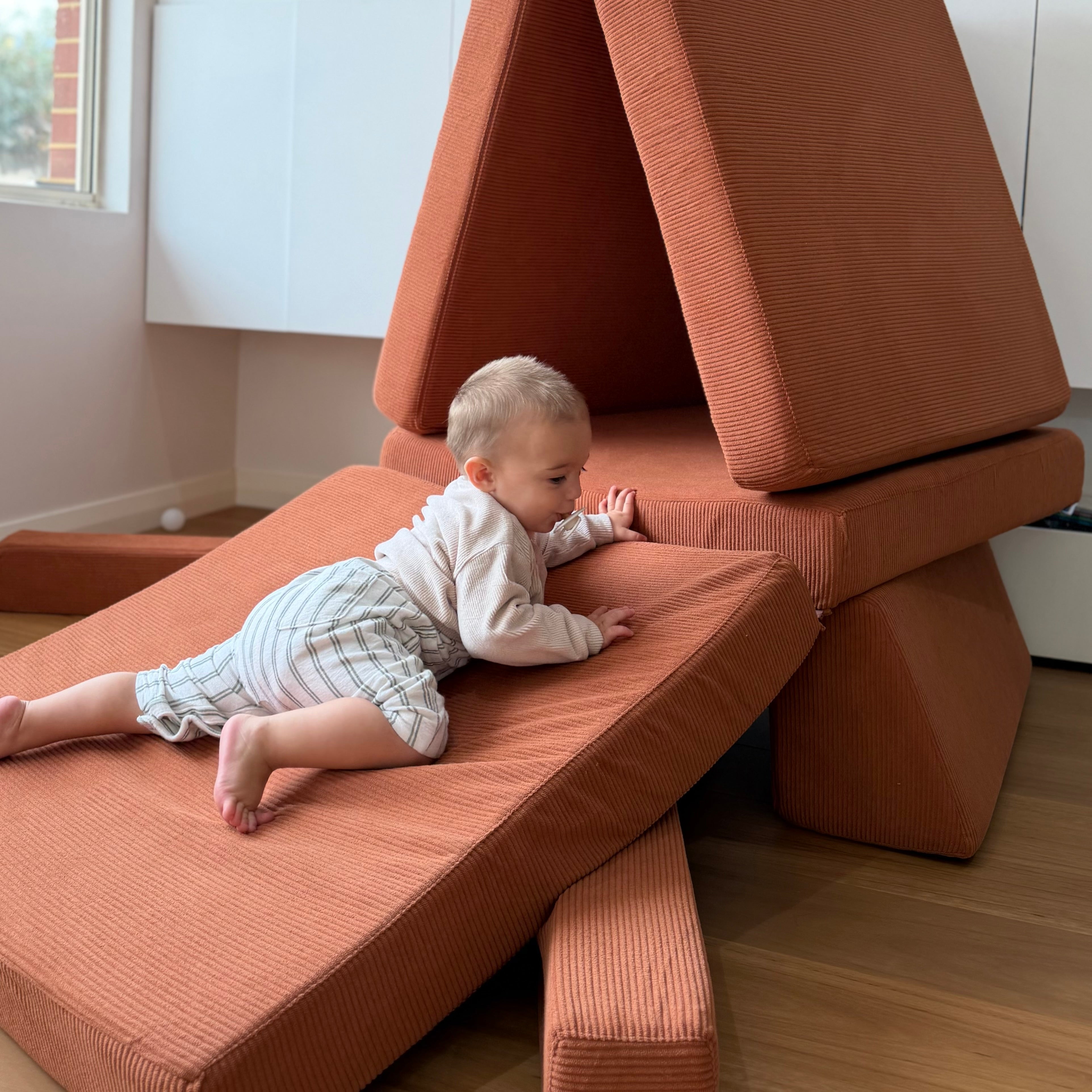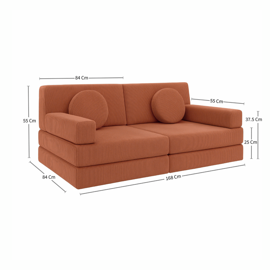 The Shortie: Compact and Charming. The Shortie features two thick bases, two full-length trapeziums, and two armrests, tailored for smaller spaces without compromising on the fun. The Shortie is simply 24cm shorter that the playcouch on one side.
