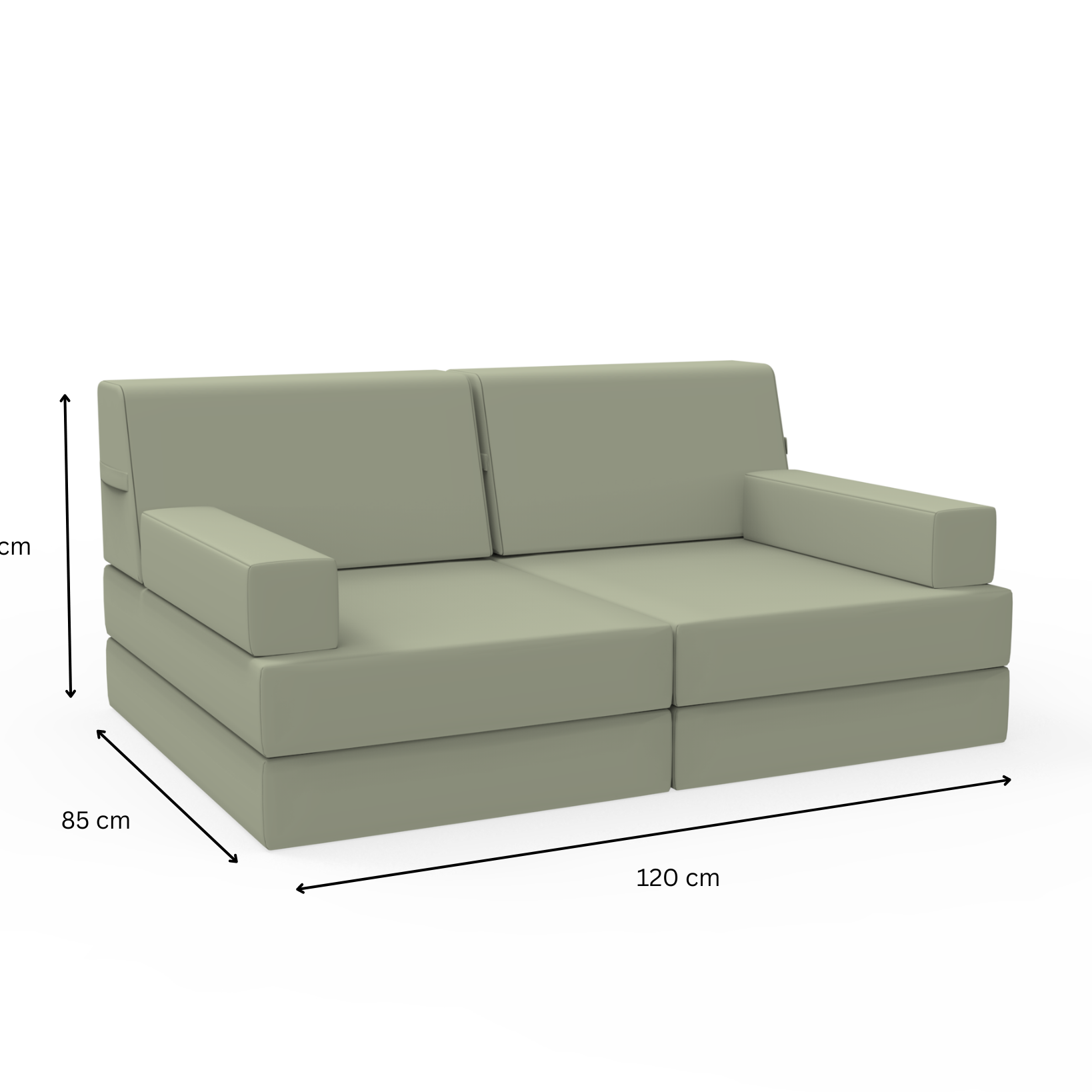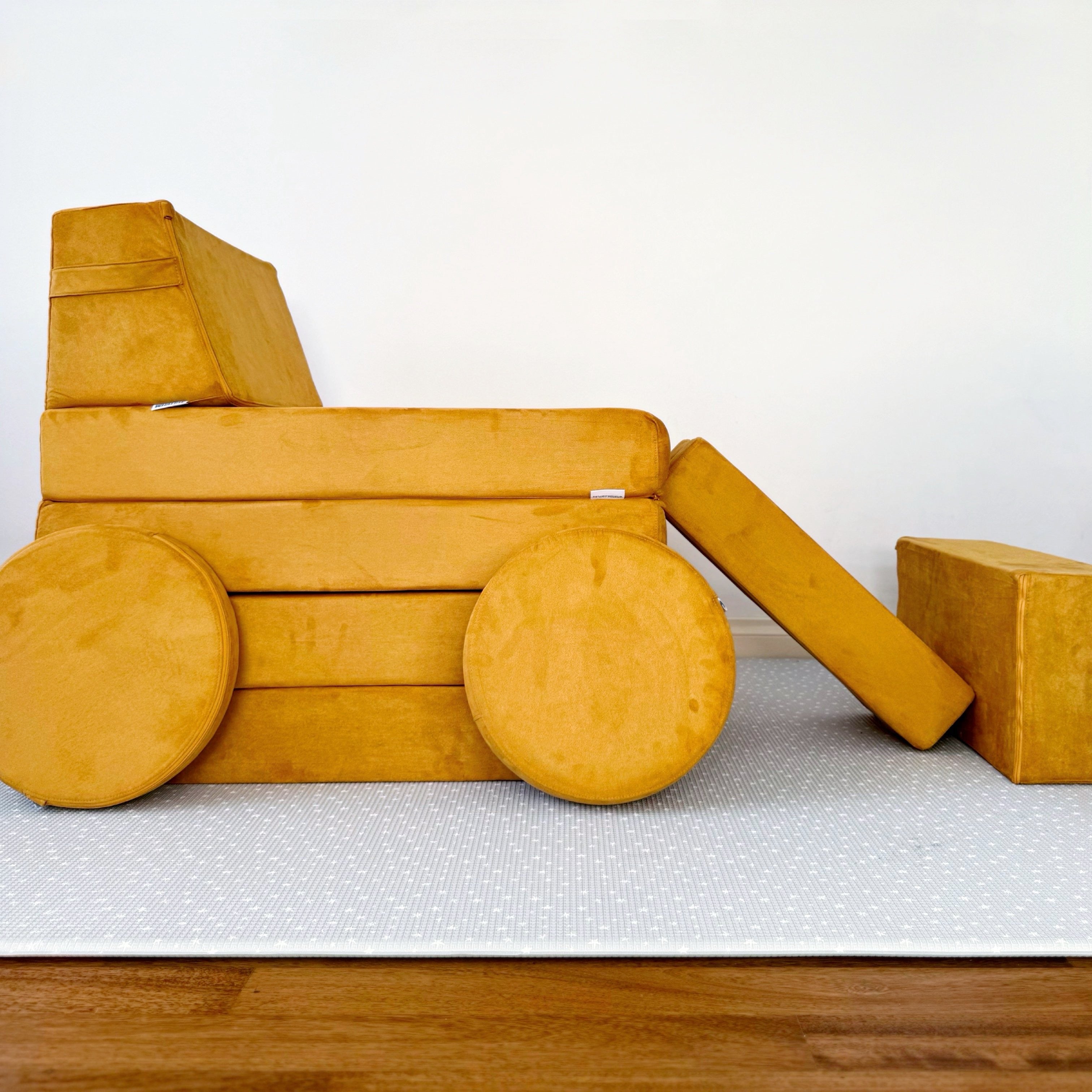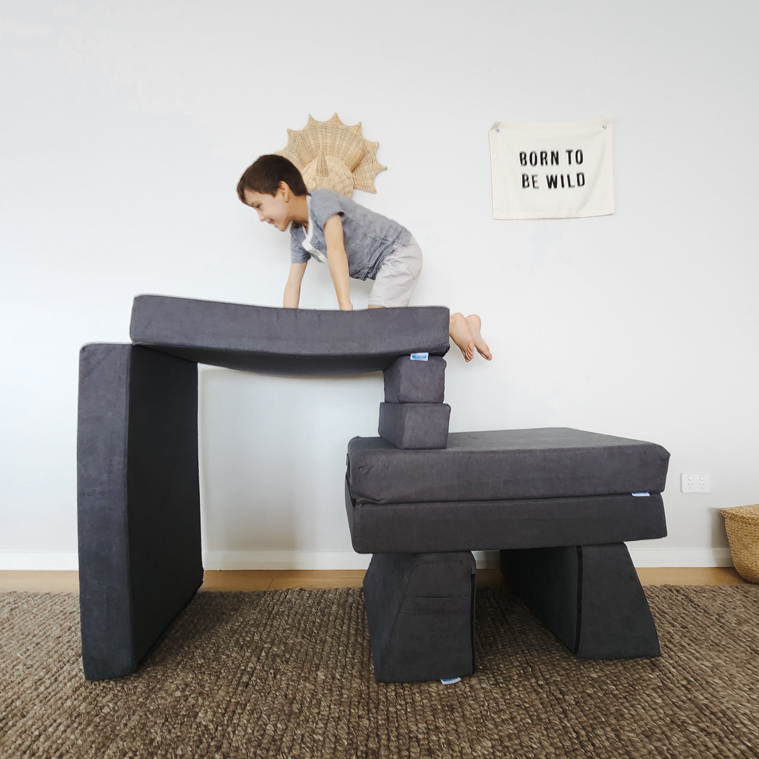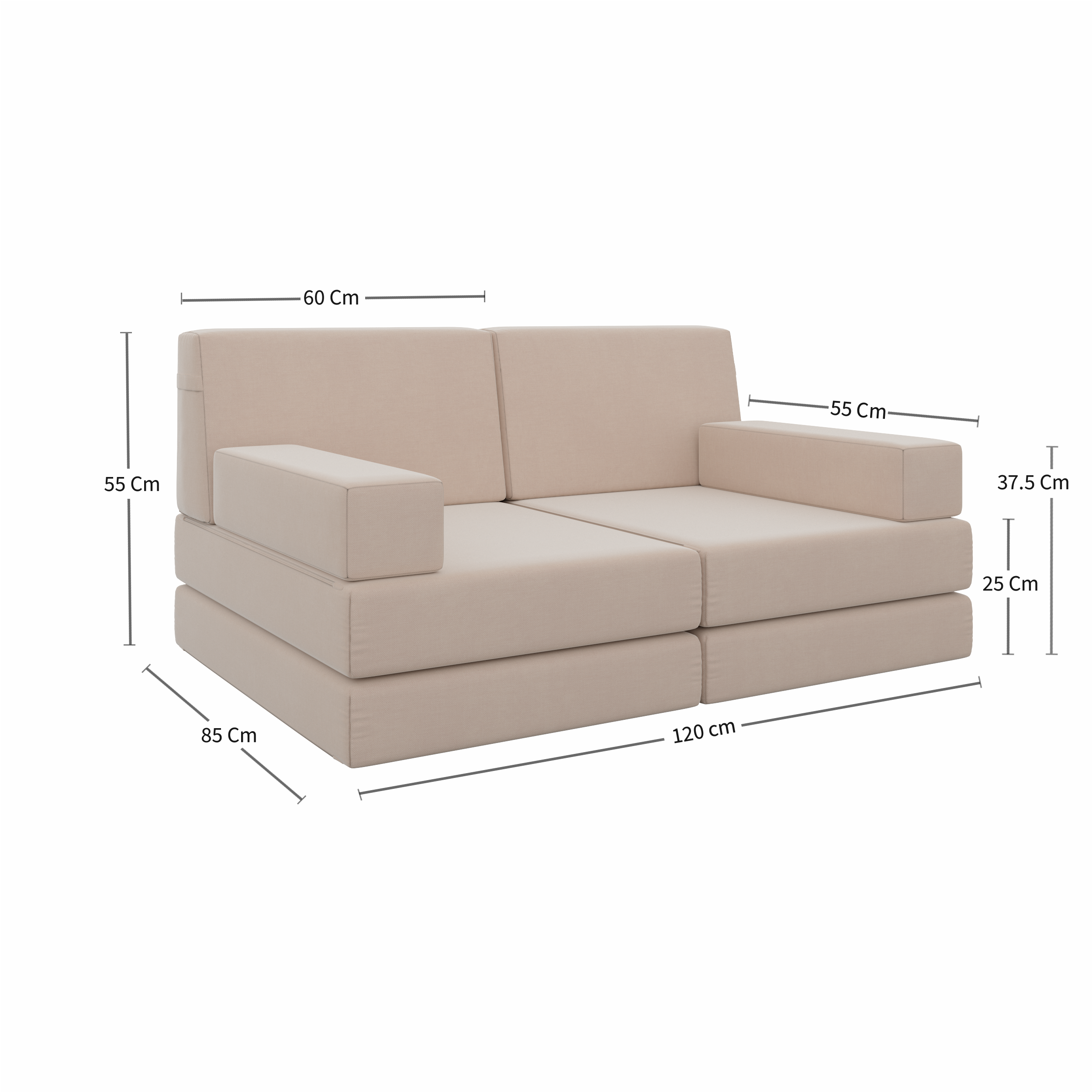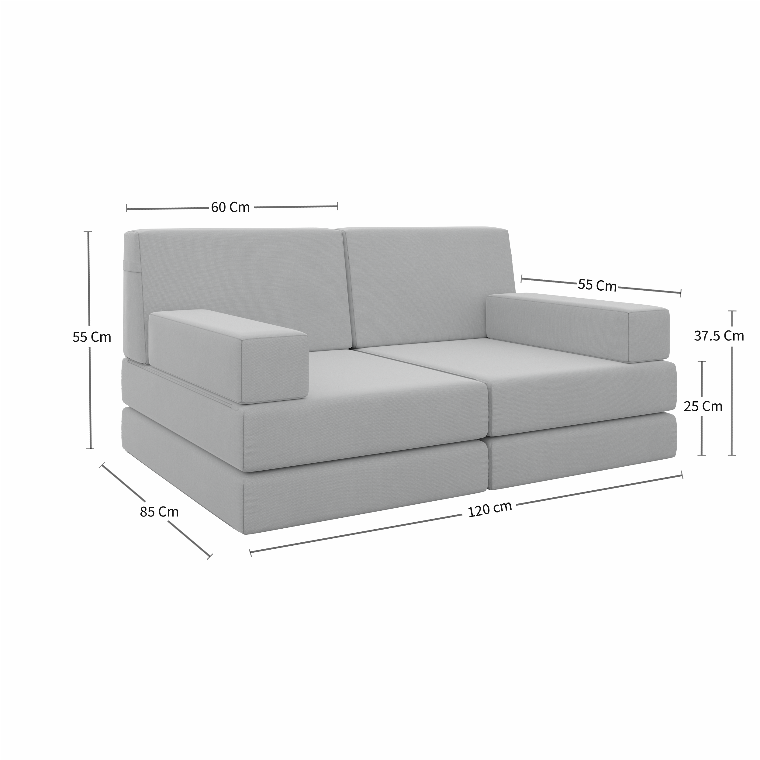 The Play Couch: An Award-Winning Favourite. Comprising of two thick bases, two full-length trapeziums, and a pair of cosy armrests, this is the favourite choice for both fun and relaxation.