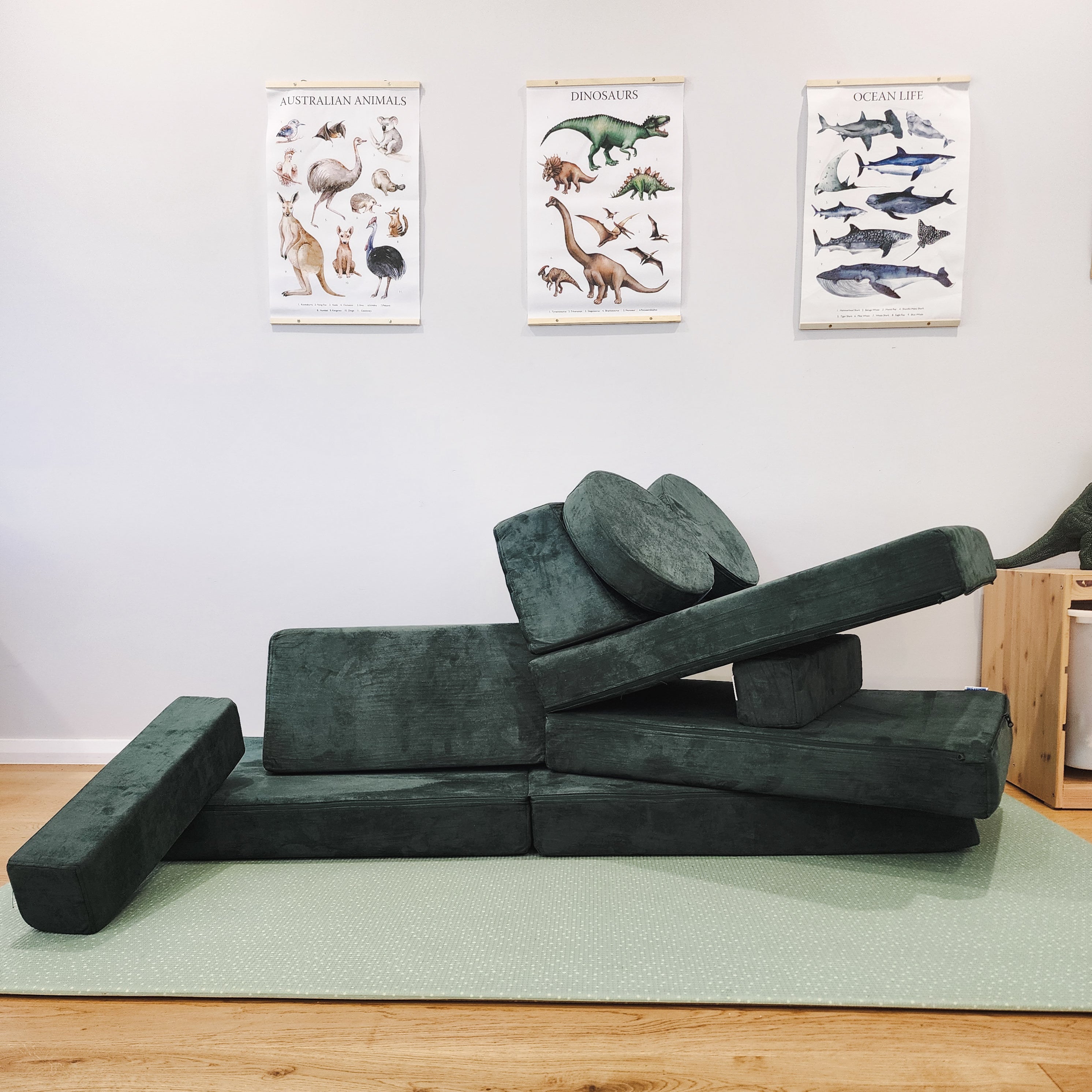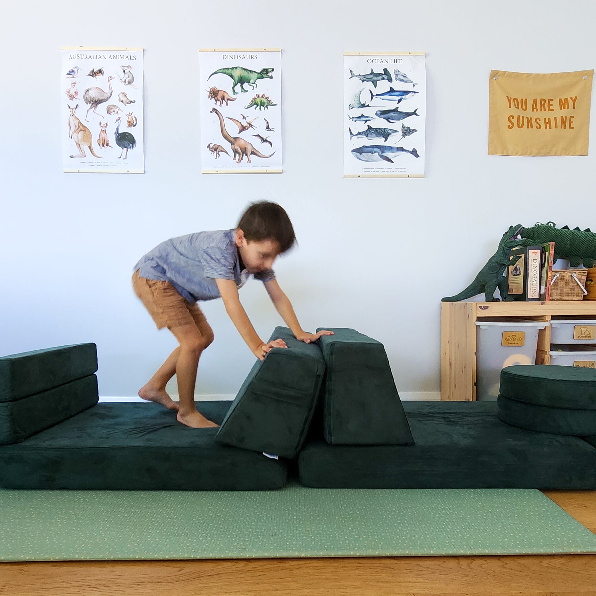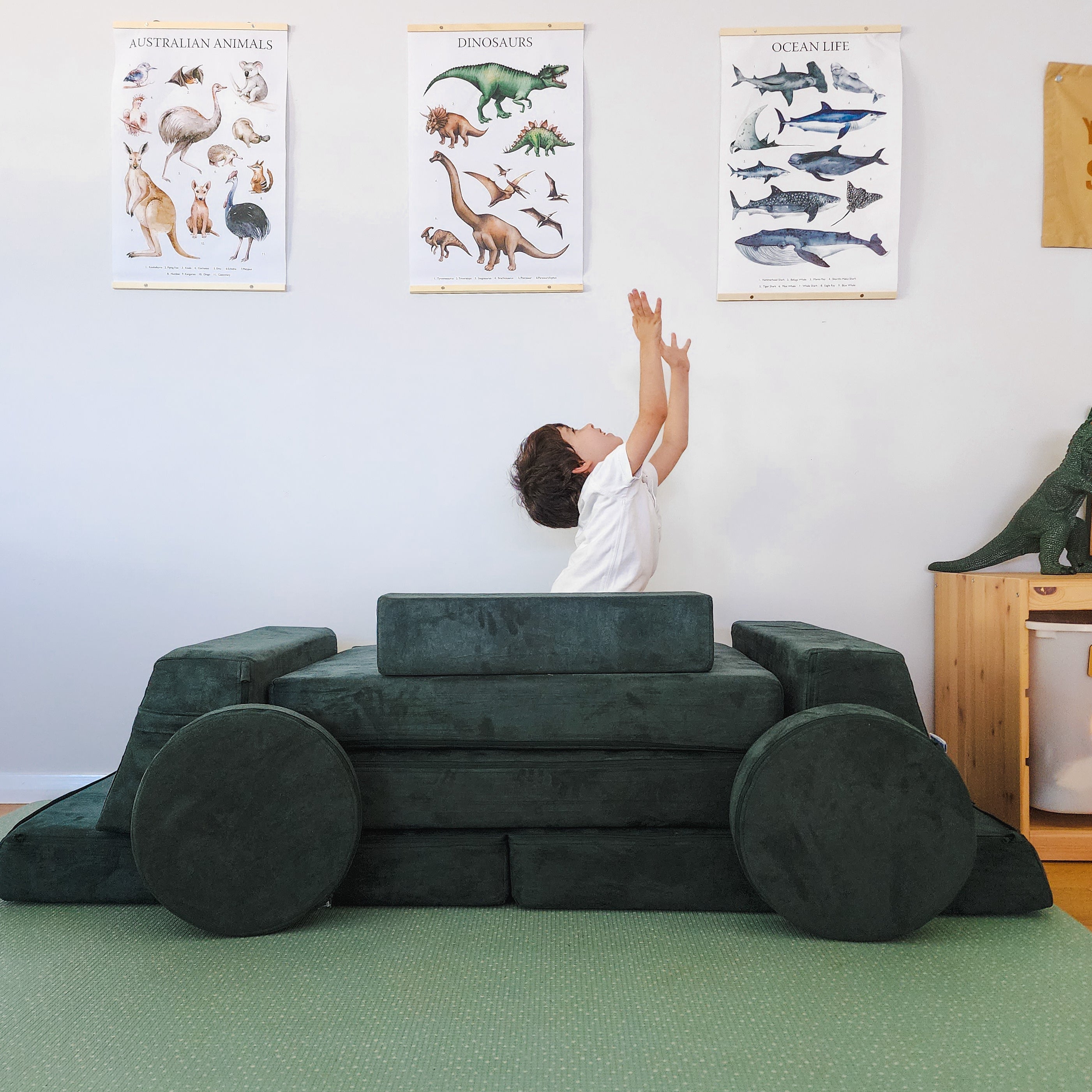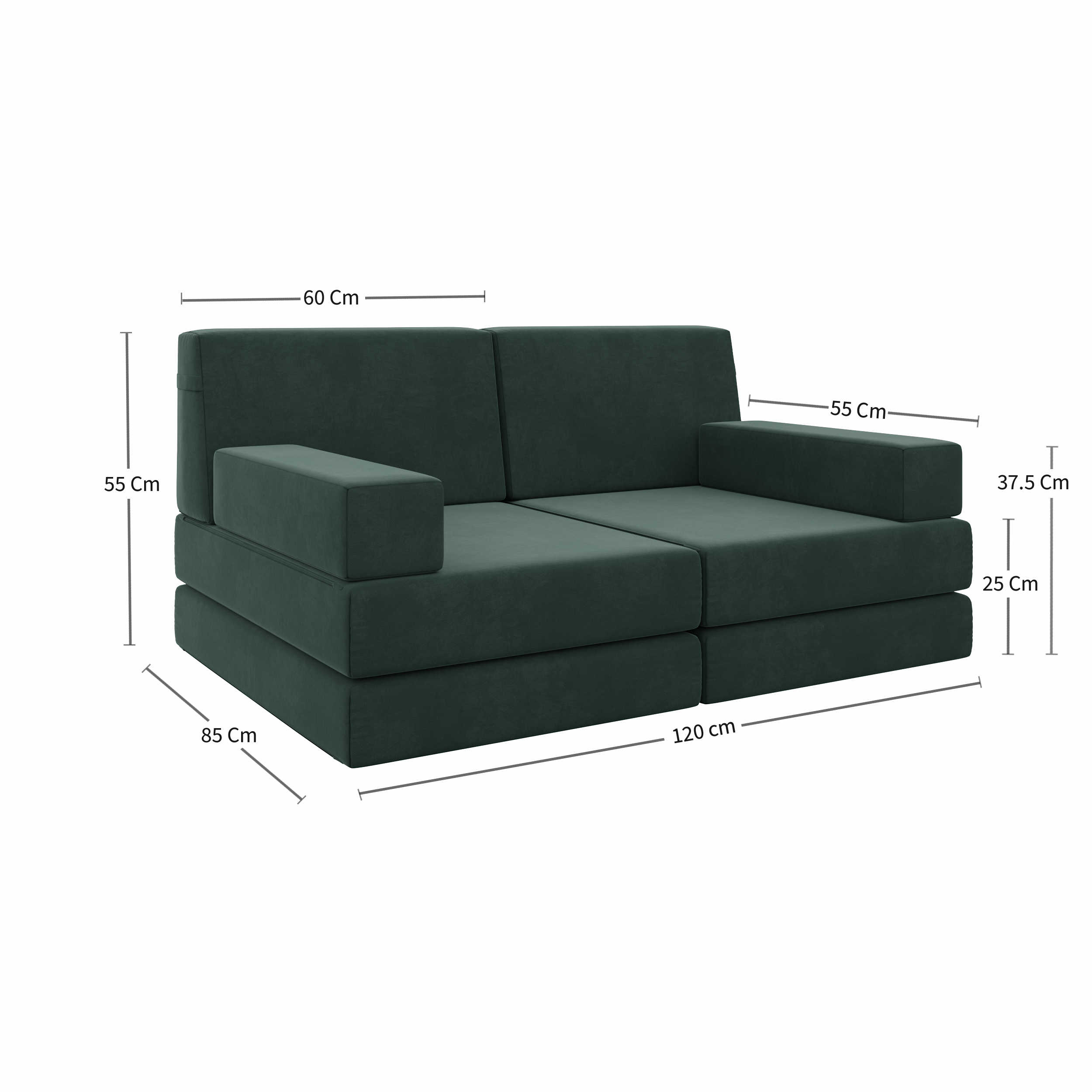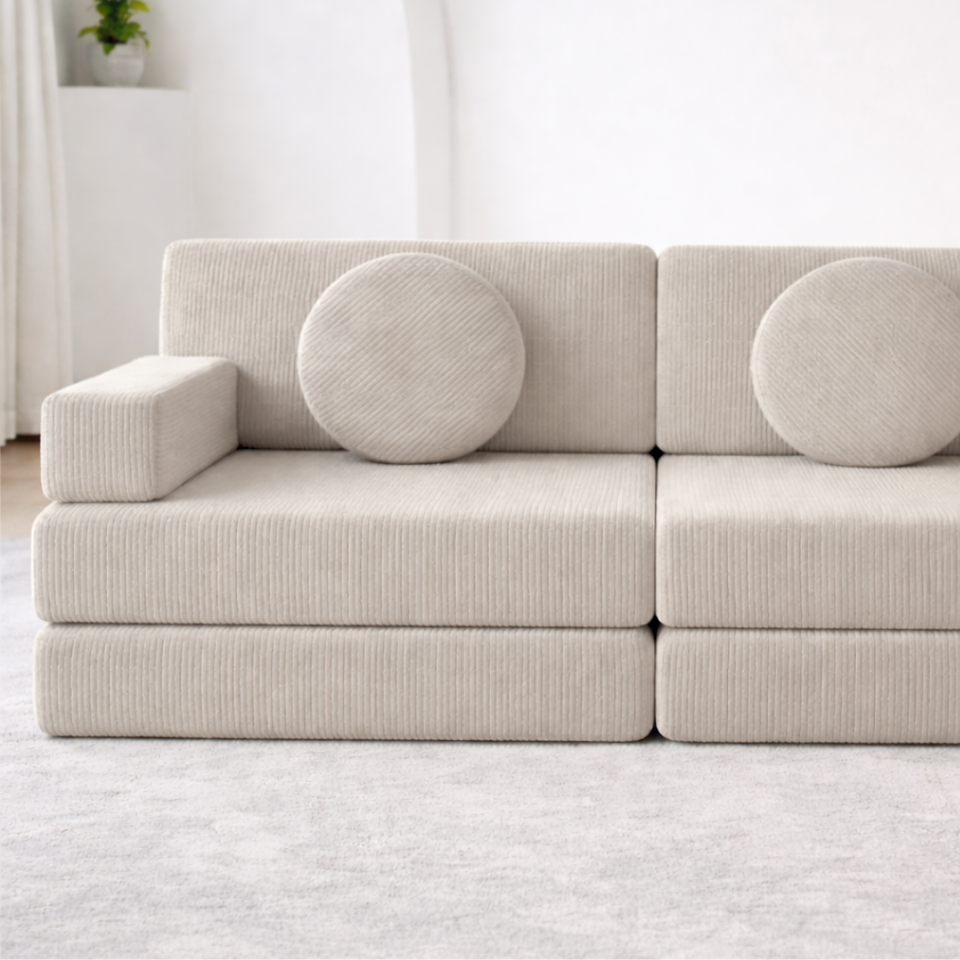 The Play Couch: An Award-Winning Favourite. Comprising of two thick bases, two full-length trapeziums, and a pair of cosy armrests, this is the favourite choice for both fun and relaxation.