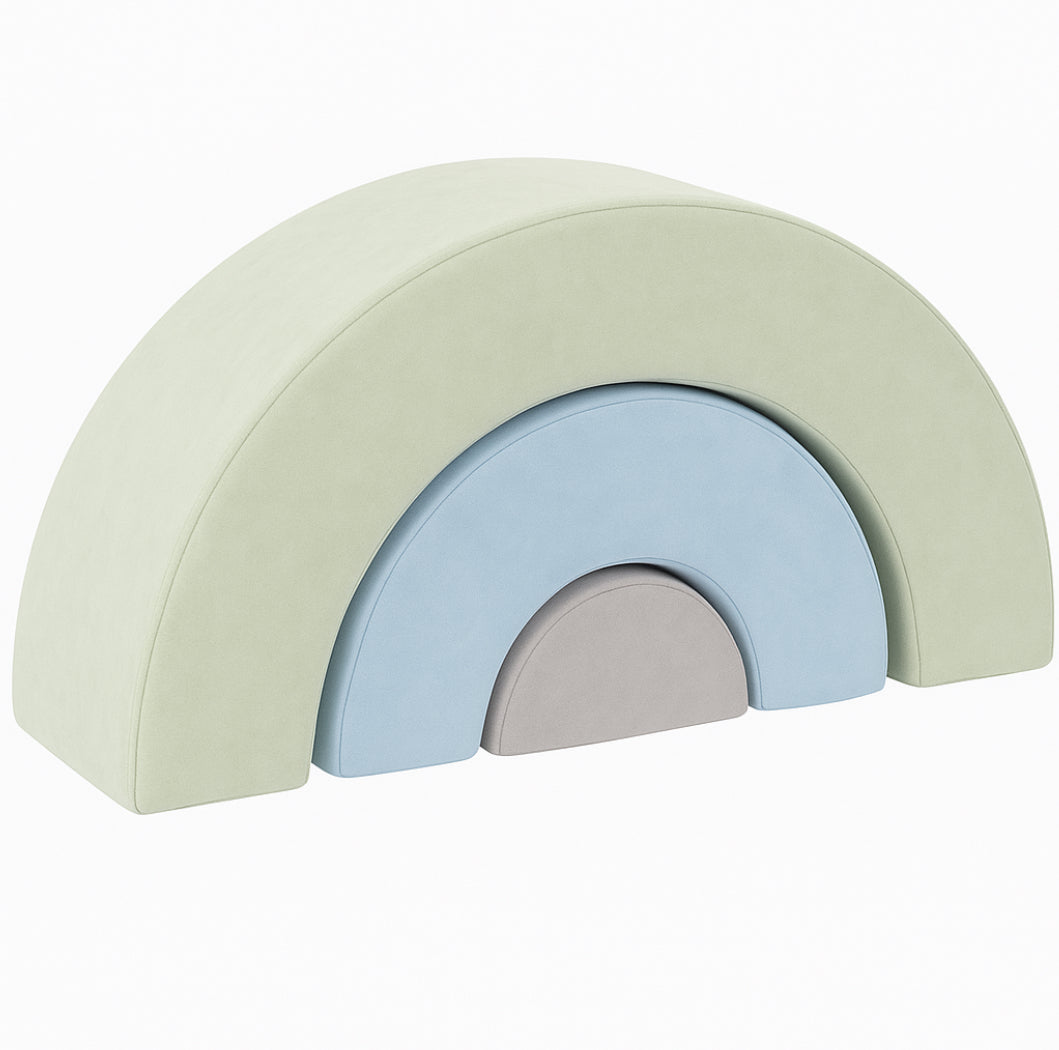 Oh-so-cute and oh-so-fun, the Rainbow sectional is a playtime staple. Stack, climb, explore and chill, the Rainbow has three super soft pieces that allow your little love to use their fine motor skills, imagination and creativity.