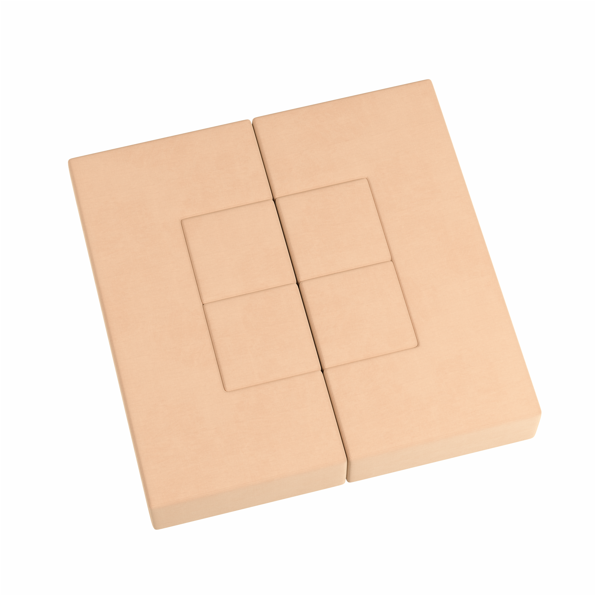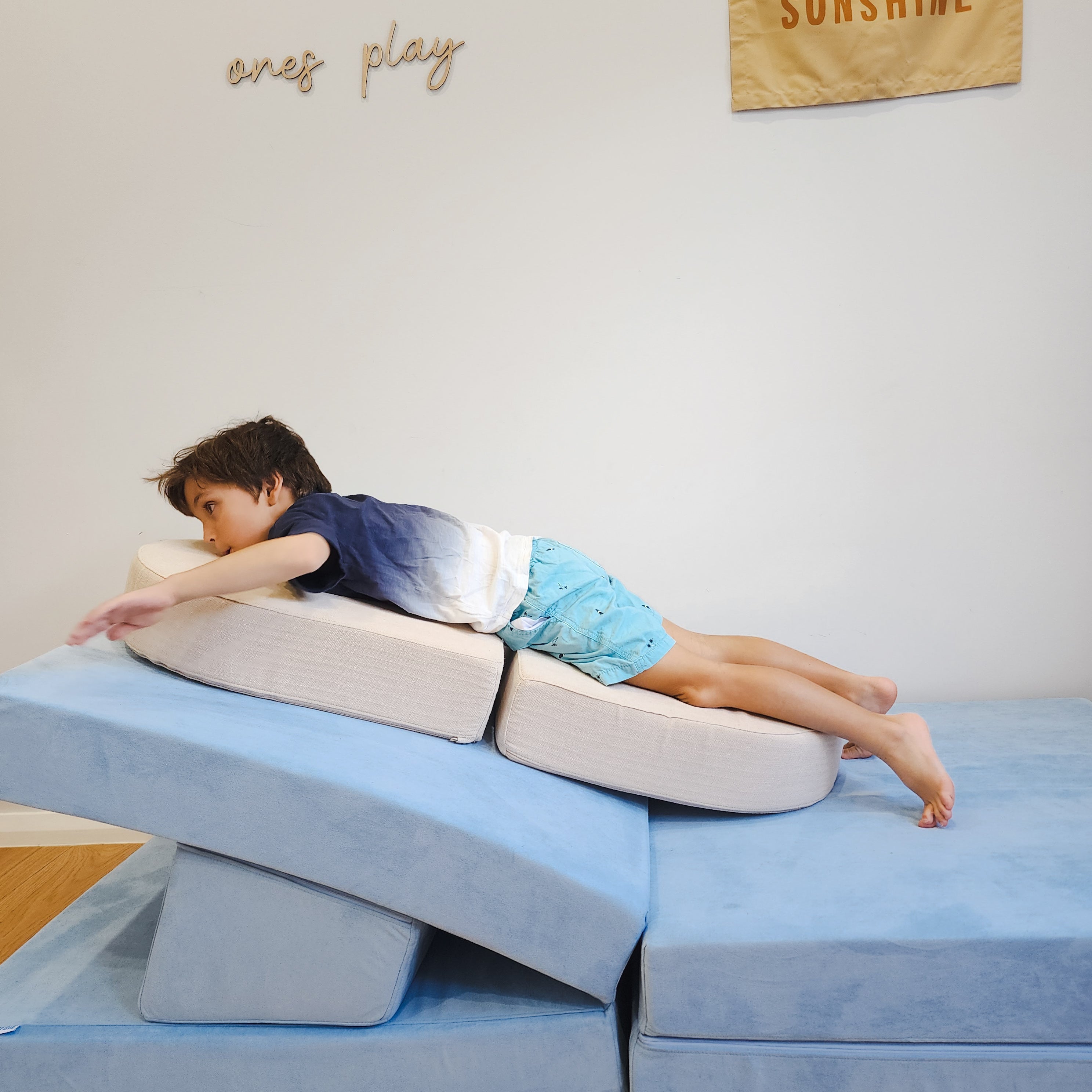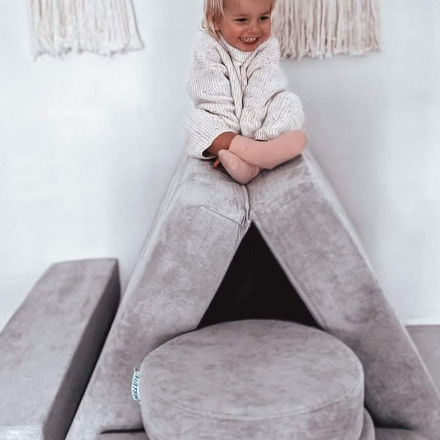 • Two full-length trapezium pieces – each measures 84 cm long × 30 cm high × 25 cm deep. These uniquely designed cushions add structure to builds, work as ramps, balance beams, or supportive backrests, and are one of the key features that make the Whatsie stand out from other play couches.