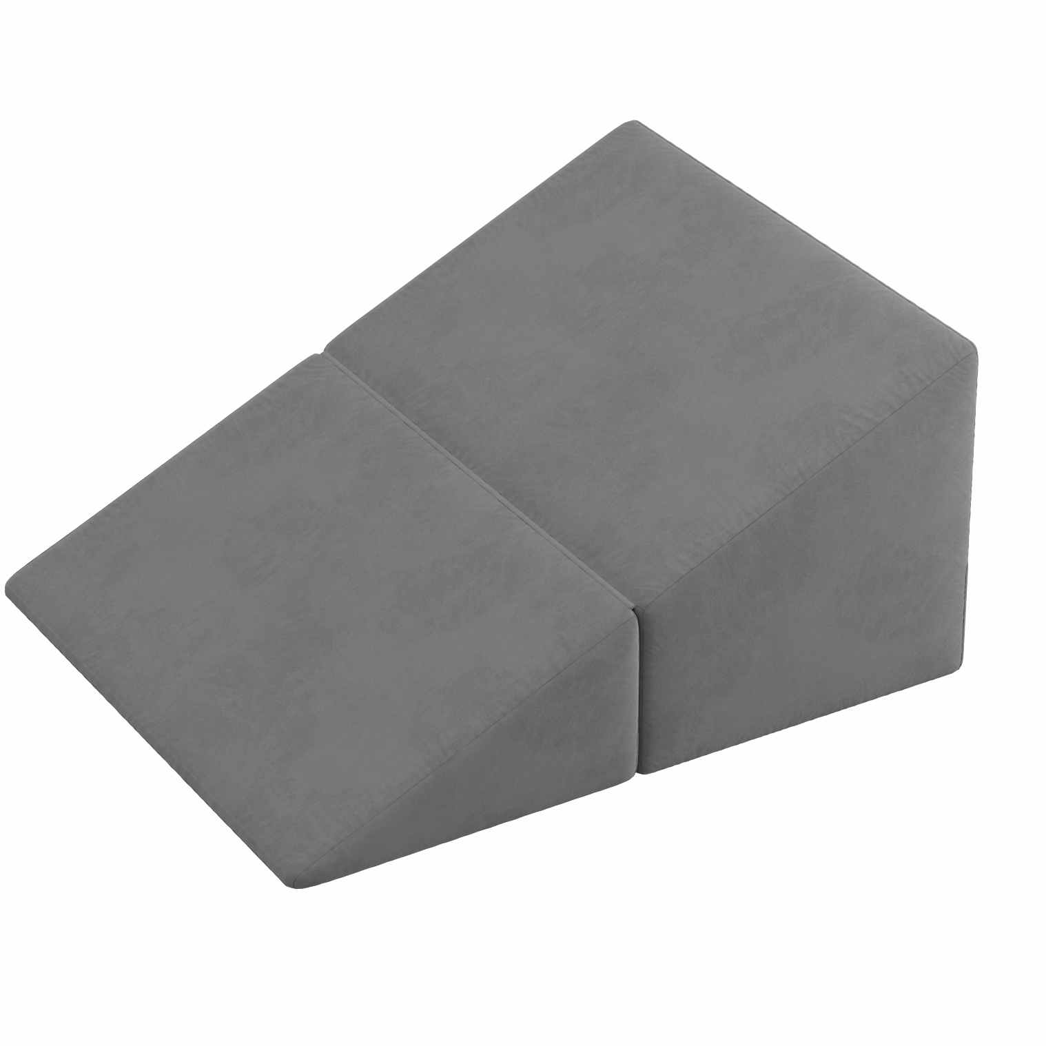 • Two full-length trapezium pieces – each measures 60 cm long × 30 cm high × 25 cm deep. These smaller trapeziums are perfect for ramps, balance beams, or angled backrests.