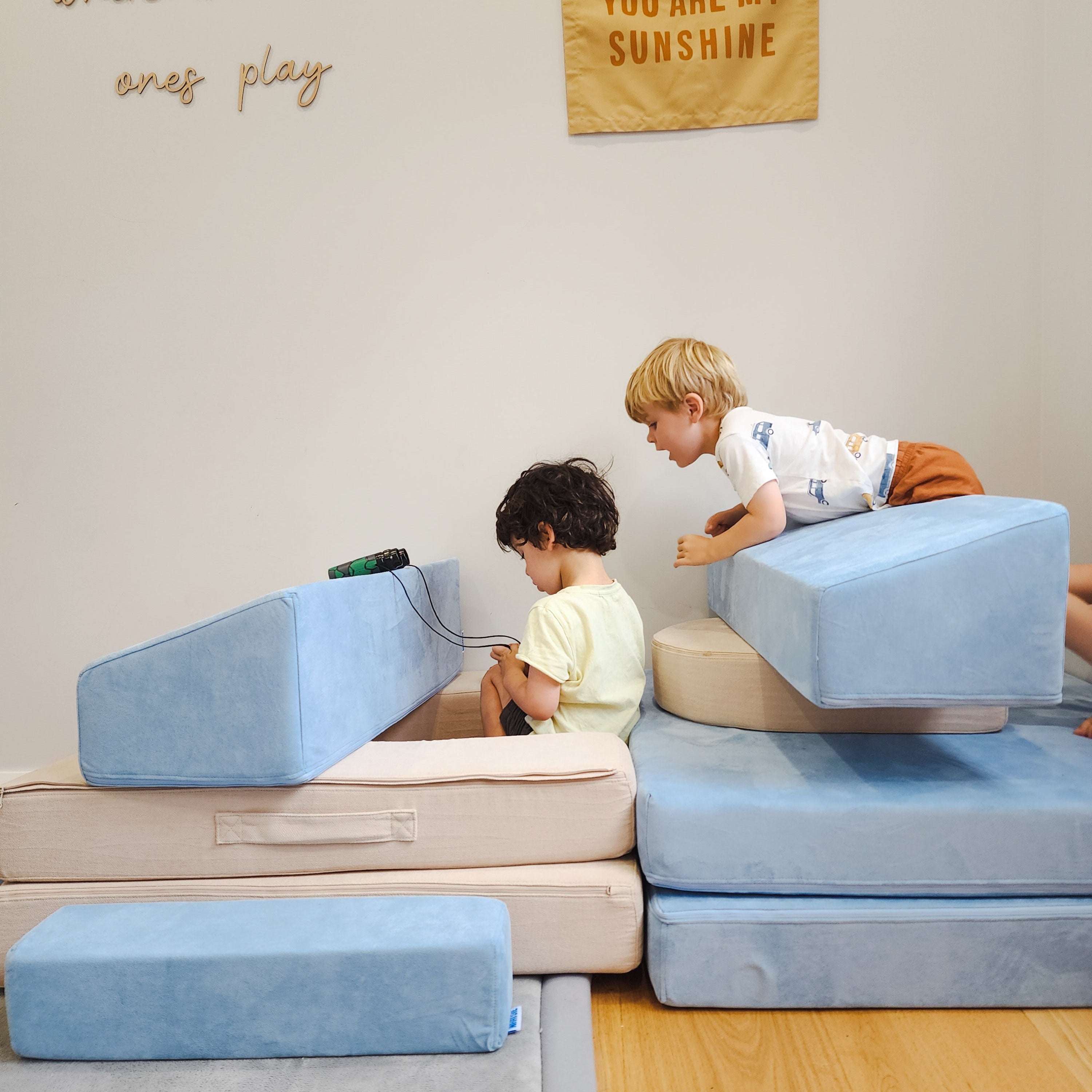 🤸 Inspired by Real Play – The flat-top trapezium cushions were designed after watching kids struggle to build with ordinary pillows.