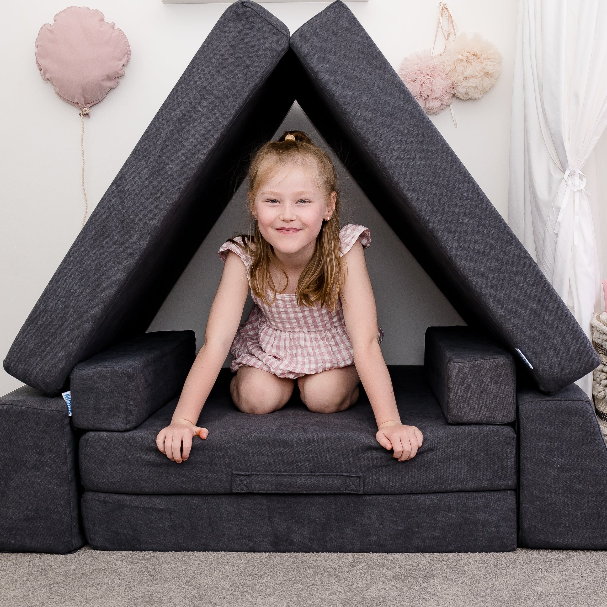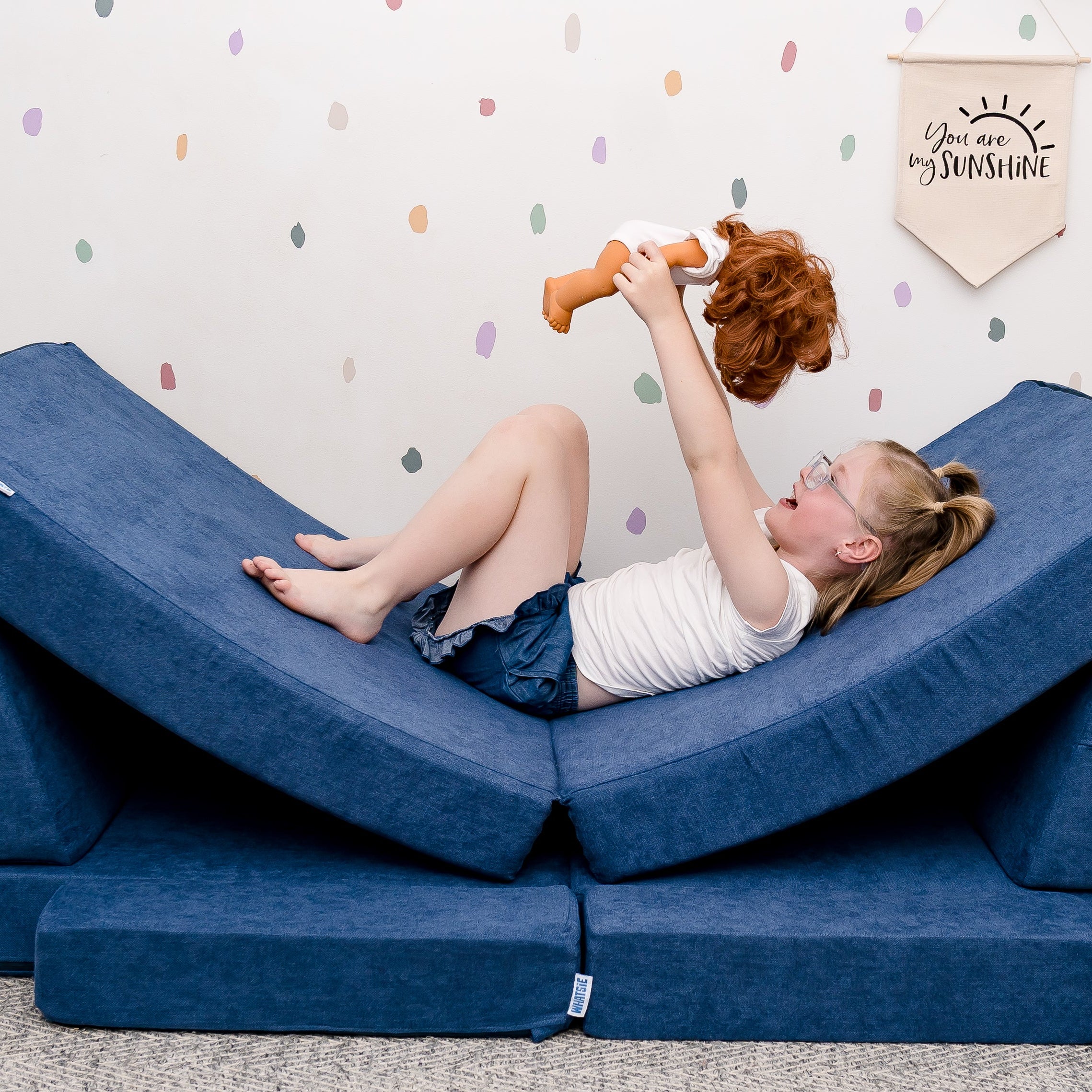 The Whatsie play couch is designed to grow with your family and is loved by kids of all ages. Toddlers enjoy crawling, climbing, and sliding, while older children use it to build cubbies, obstacle courses, stages, rocket ships, and imaginative worlds. Even teenagers and adults enjoy lounging on the Whatsie thanks to its sturdy design and comfortable foam.