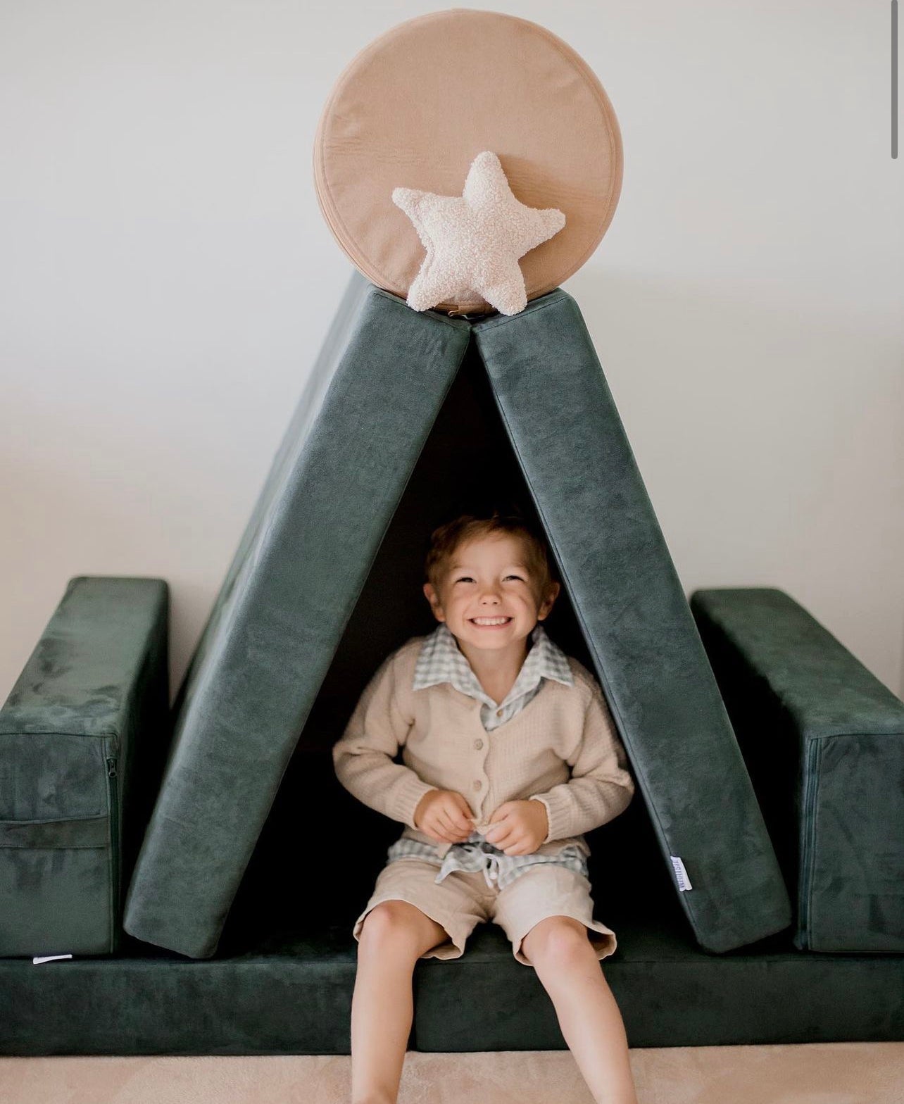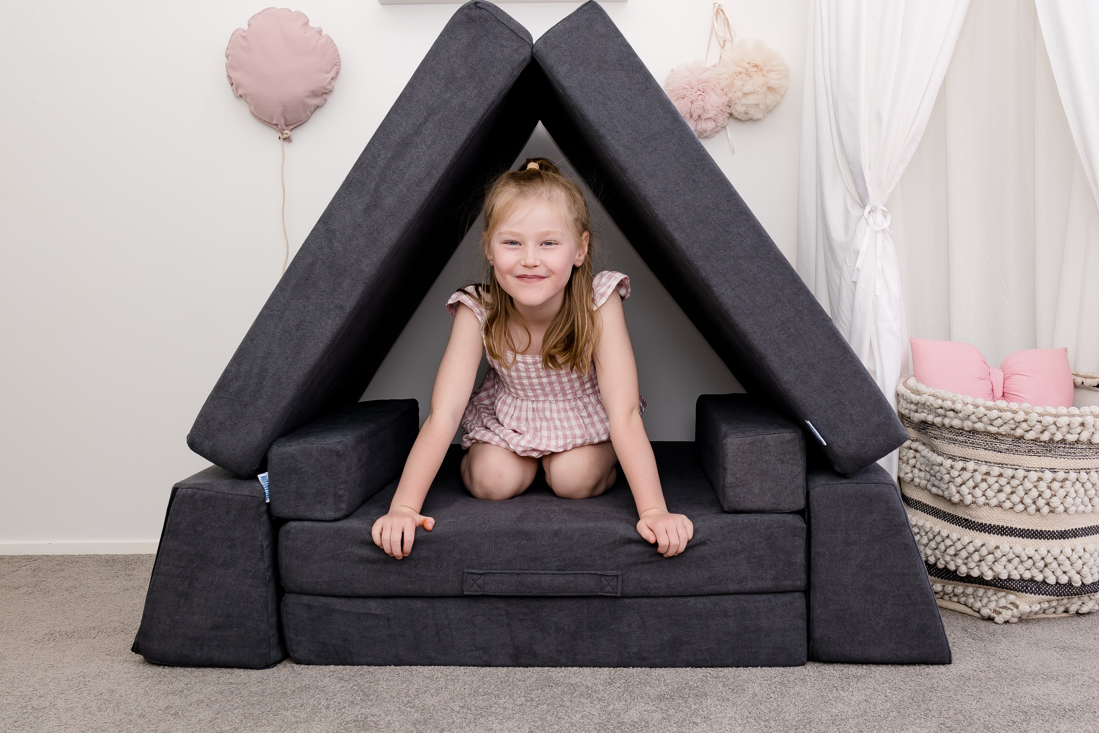 💡 Tip: Measuring your space before ordering is always a good idea. If the full-size Whatsie is a little too big for your room, we also offer the Shortie (a smaller version with shorter base cushions) and the Armie (a compact single-seater style). These options are perfect for smaller playrooms, apartments, or as an add-on to expand your play setup over time.
