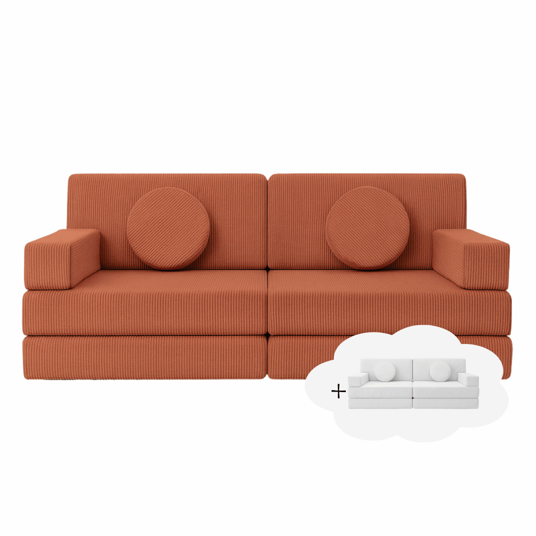 💡 Tip: Measuring your space before ordering is always a good idea. If the full-size Whatsie is a little too big for your room, we also offer the Shortie (a smaller version with shorter base cushions) and the Armie (a compact single-seater style). These options are perfect for smaller playrooms, apartments, or as an add-on to expand your play setup over time.
