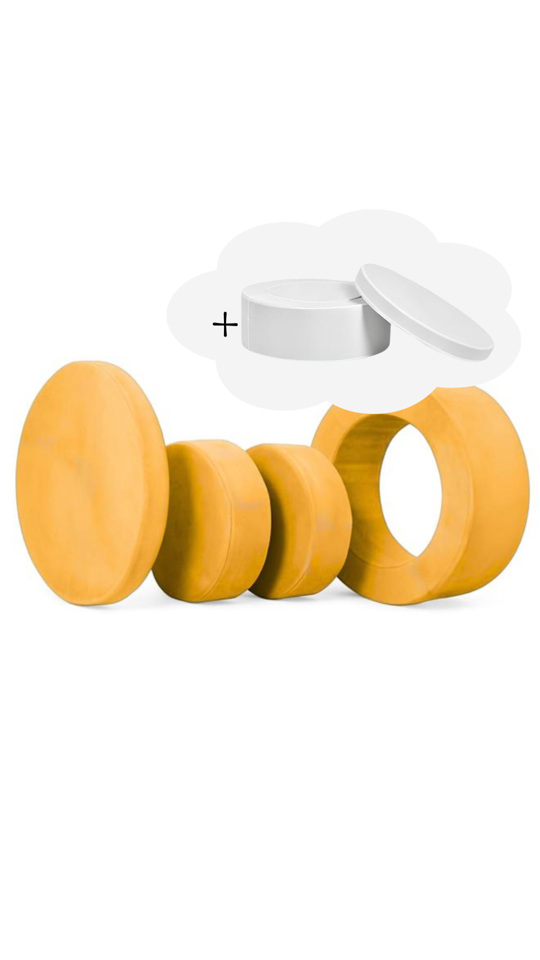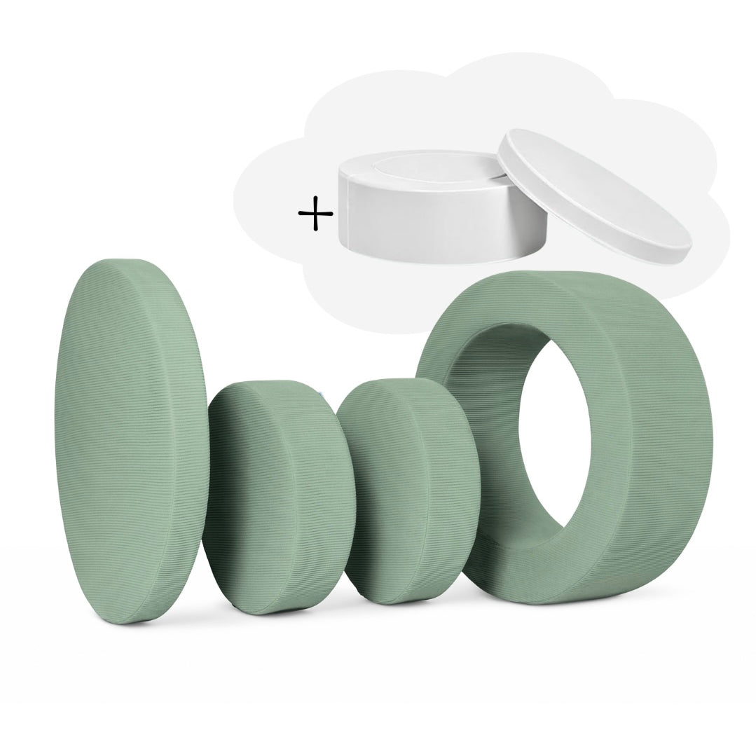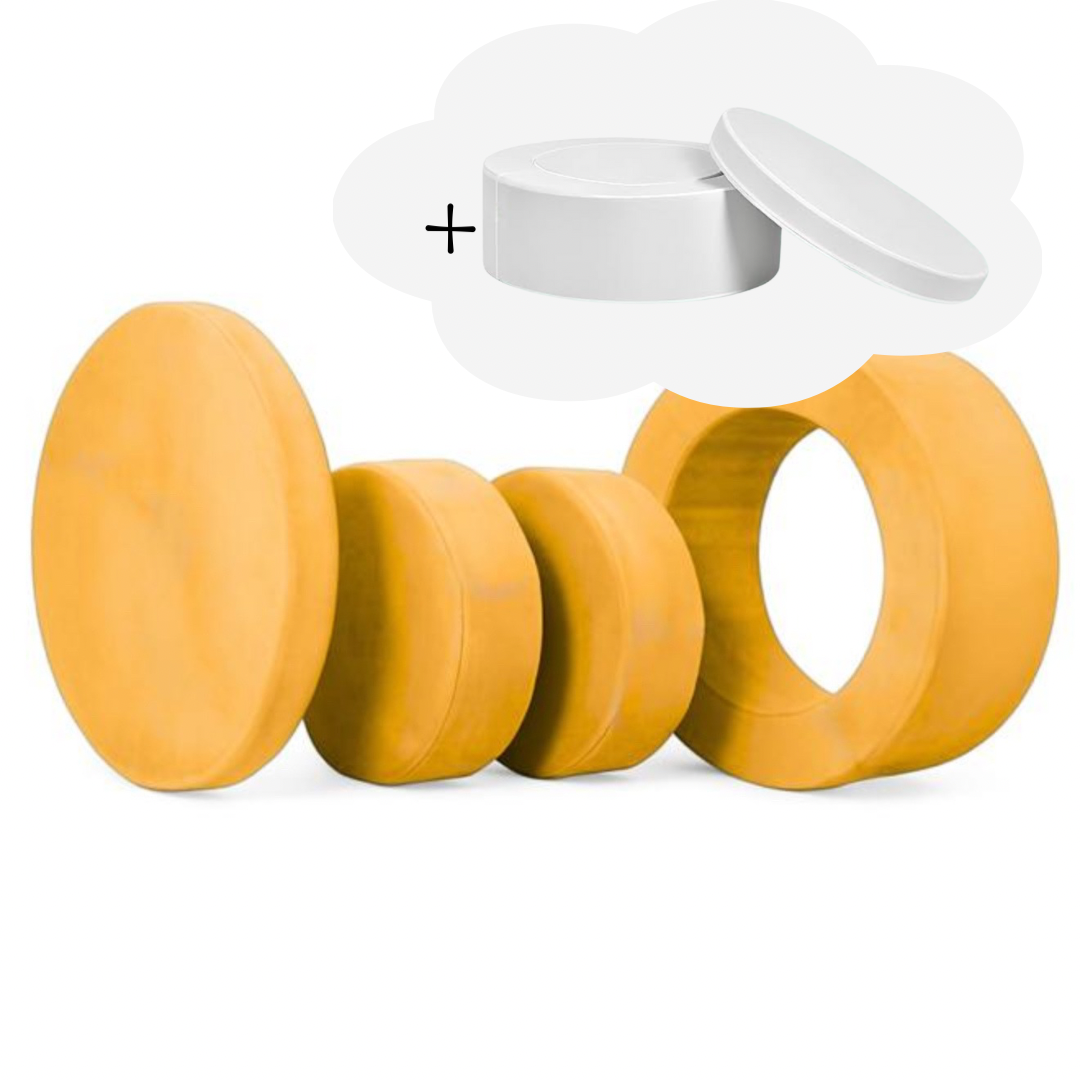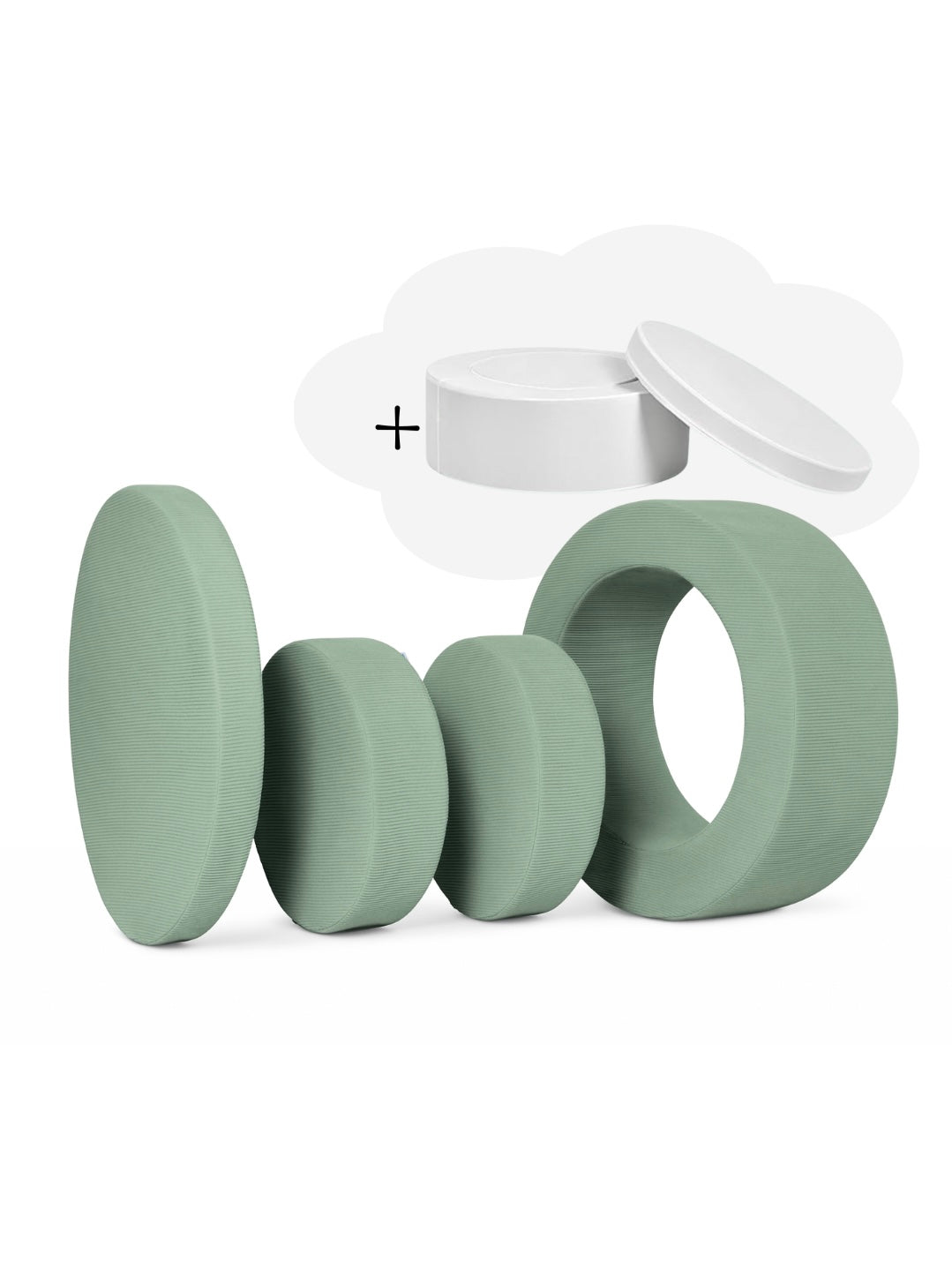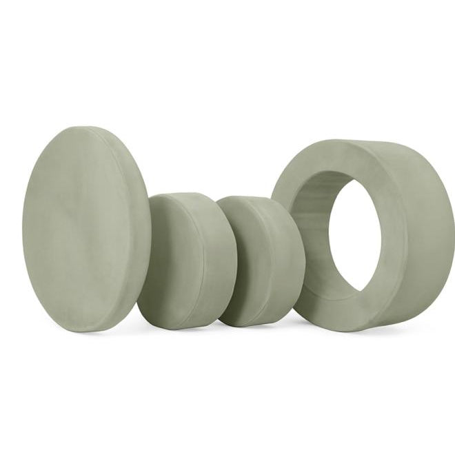 - Two bonus spot cushions – included with every Shortie, these round cushions can be used as stepping stones, seats, or creative play pieces.