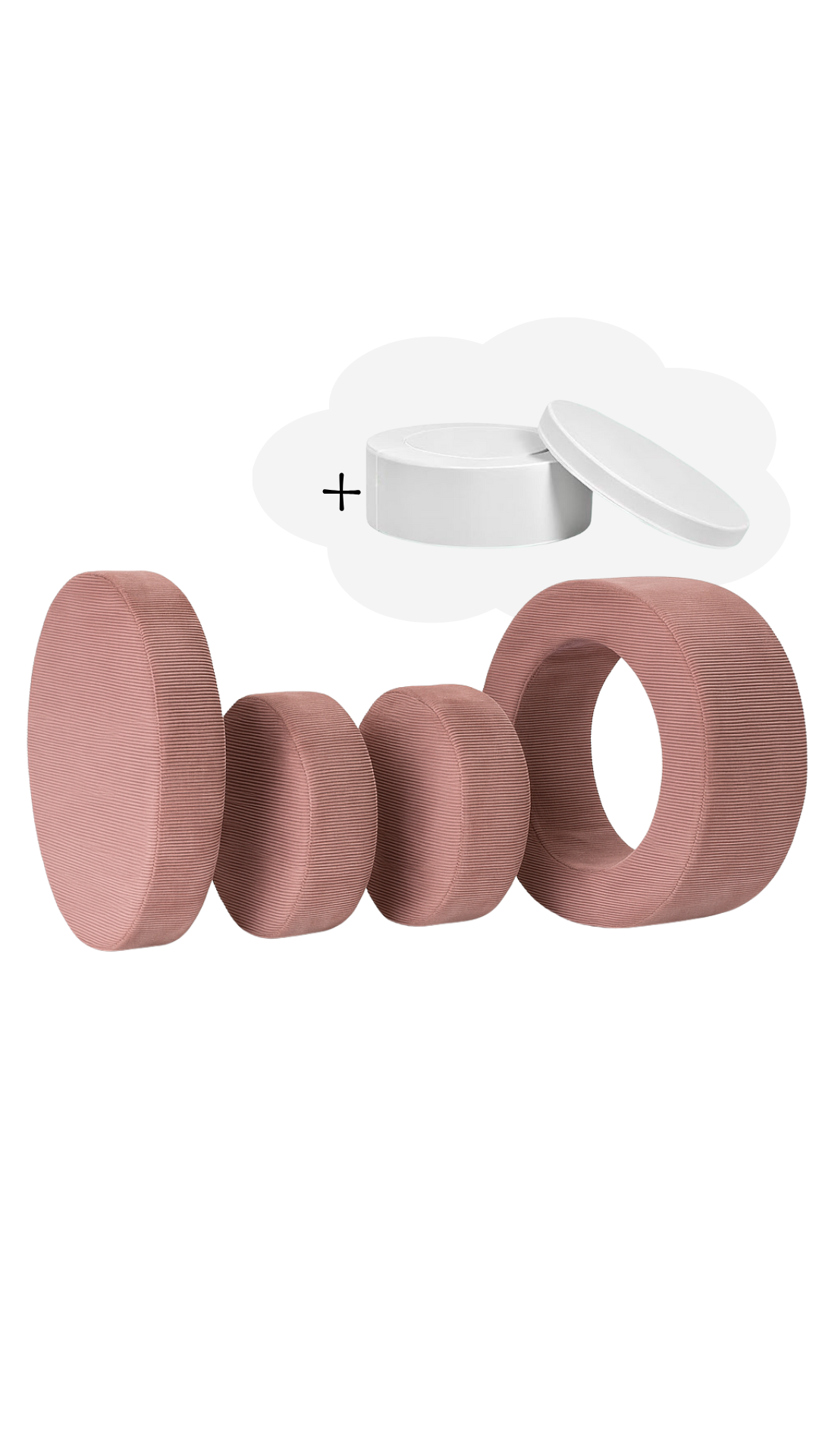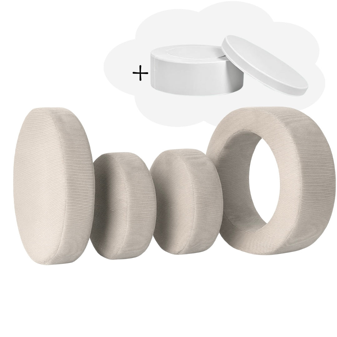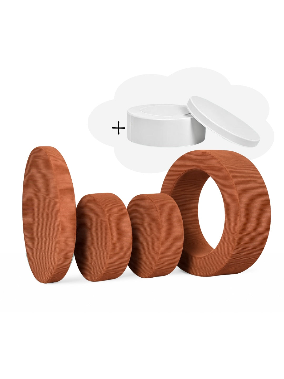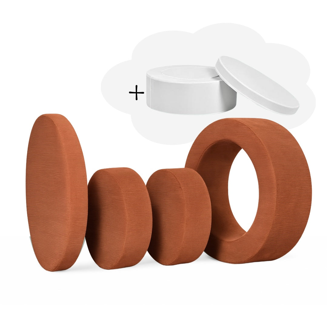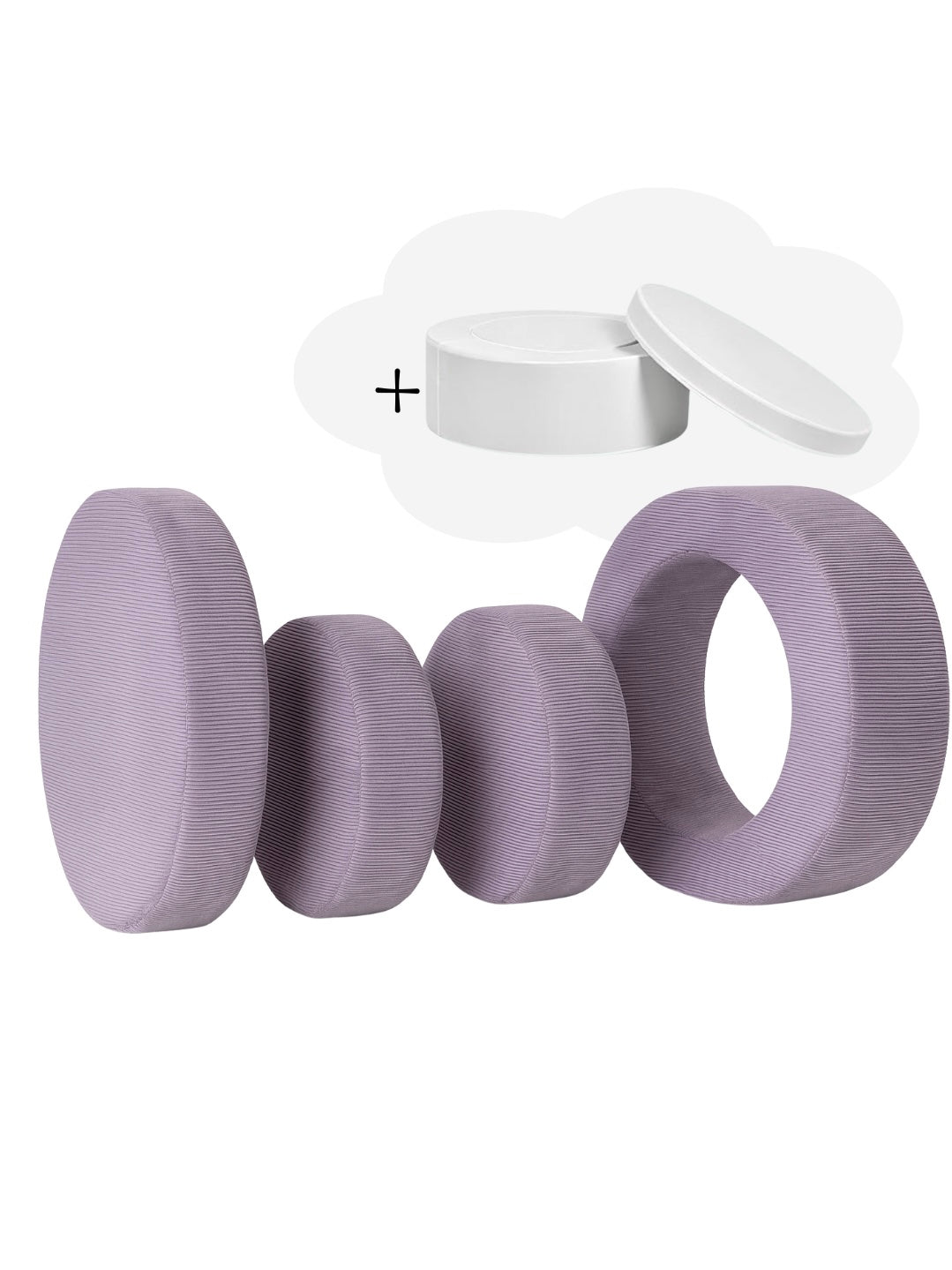 Use this play ottoman as a footrest, seat, table, stepping stone, or building block. The Whottie is designed for both lounging and imaginative play. Its round, versatile shape makes it a natural fit for cubby houses, obstacle courses, balance games, and chill-out time.
