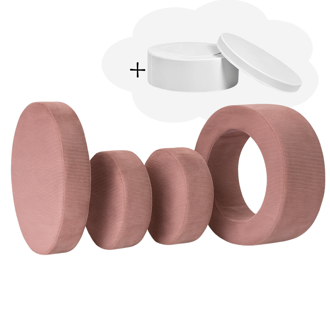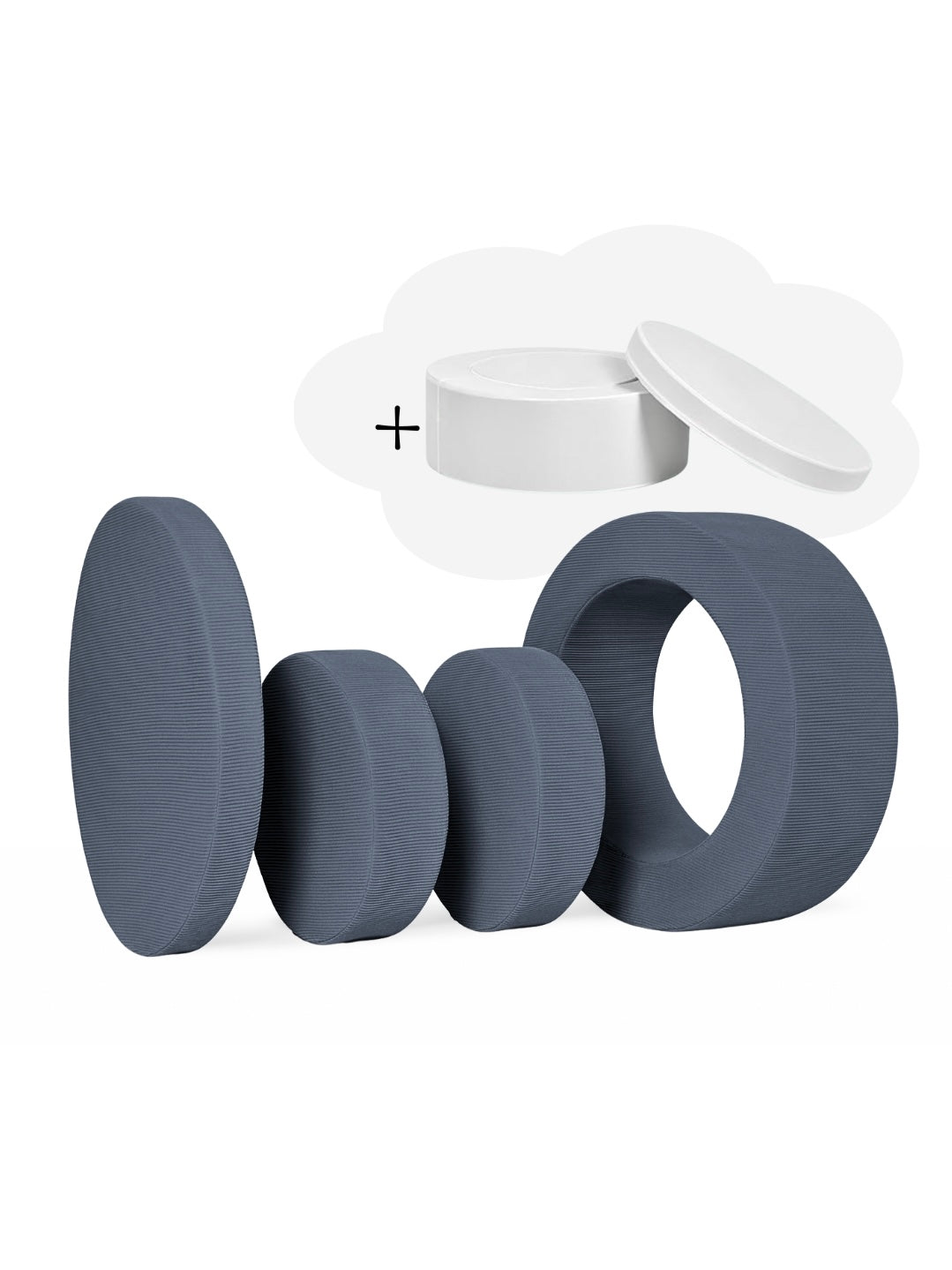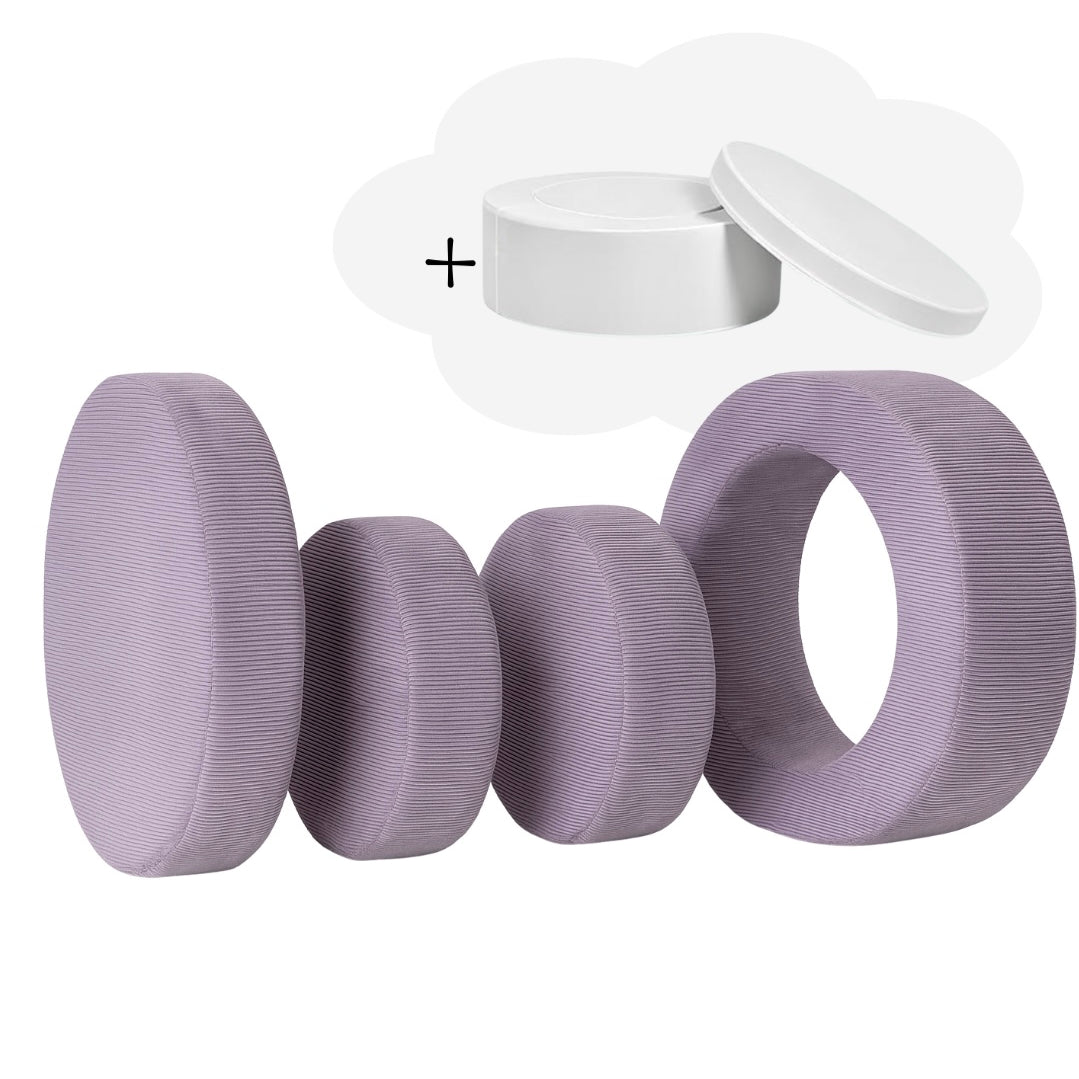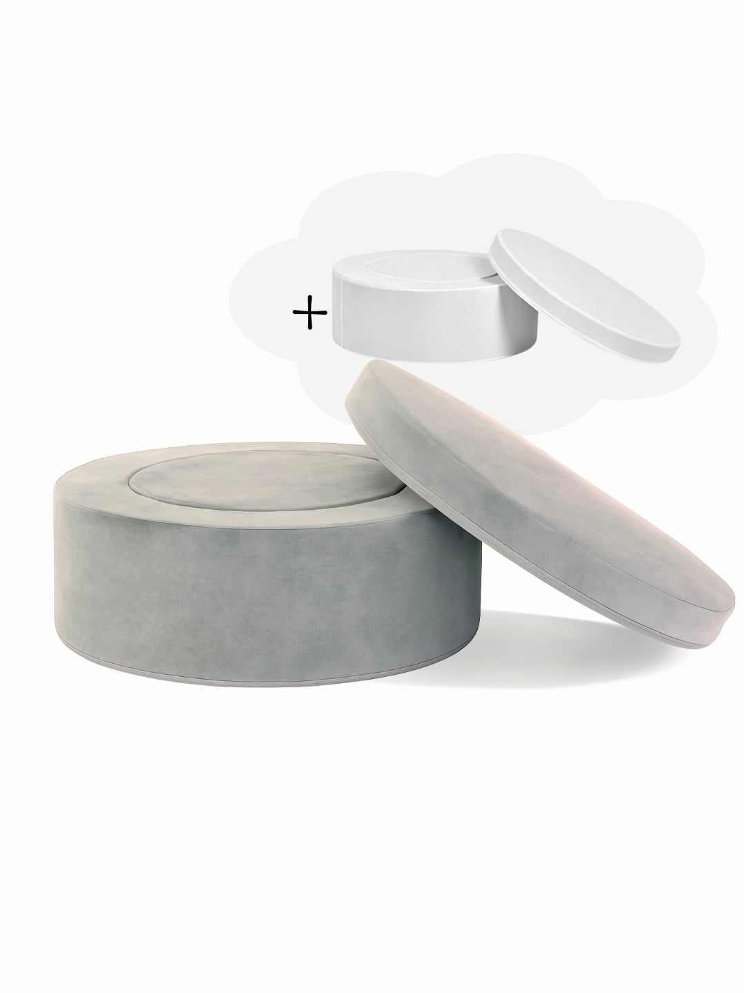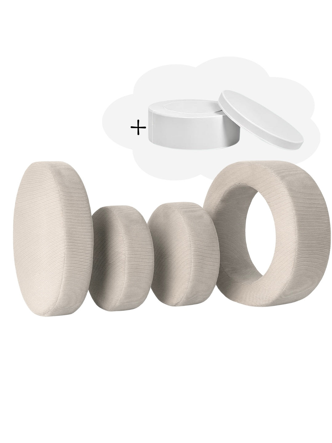 Use this play ottoman as a footrest, seat, table, stepping stone, or building block. The Whottie is designed for both lounging and imaginative play. Its round, versatile shape makes it a natural fit for cubby houses, obstacle courses, balance games, and chill-out time.